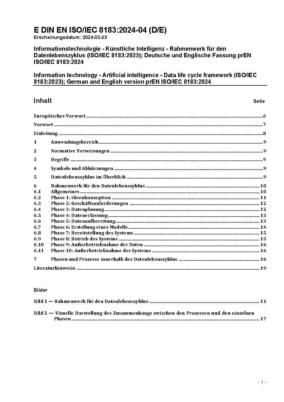 Information technology - Artificial intelligence - Data life cycle framework (ISO/IEC 8183:2023); German version EN ISO/IEC 8183:2024