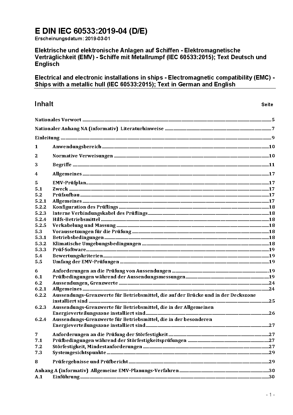 Elektrische und elektronische Anlagen auf Schiffen - Elektromagnetische Verträglichkeit (EMV) - Schiffe mit Metallrumpf (IEC 60533:2015)