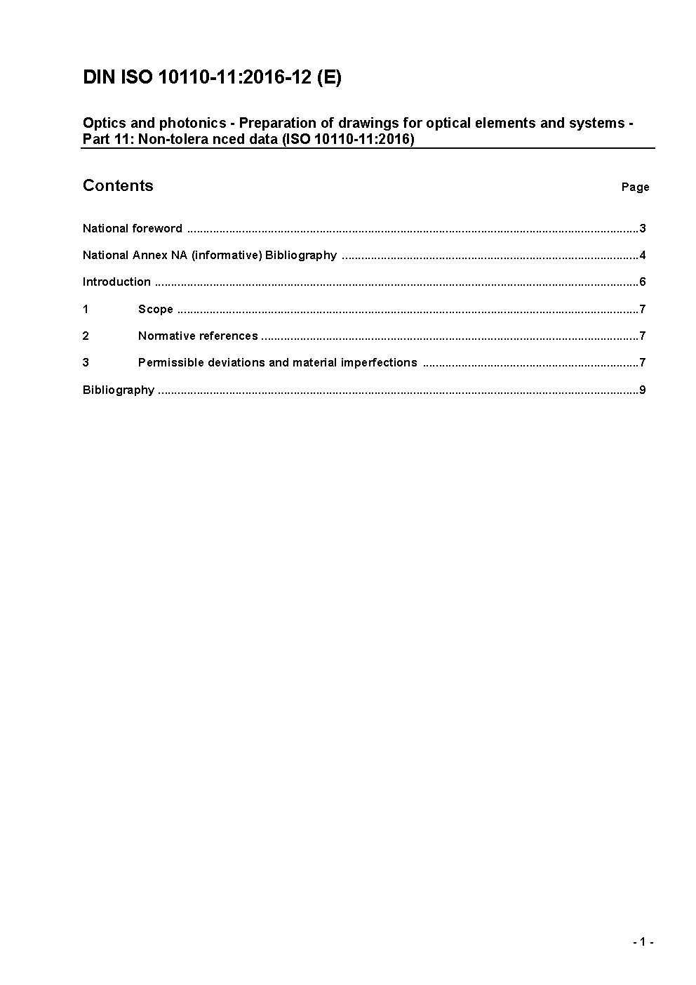 Optics and optical instruments - Preparation of drawings for optical elements and systems - Part 11: Non-toleranced data (ISO 10110-11:1996)