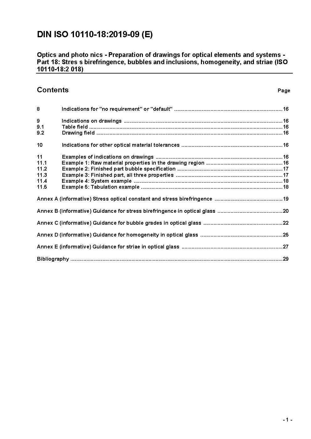 Optics and photonics - Preparation of drawings for optical elements and systems - Part 18: Material imperfections - Stress birefringence, bubbles and inclusions, and homogeneity and striae (ISO/DIS 10110-18:2017); Text in German and English