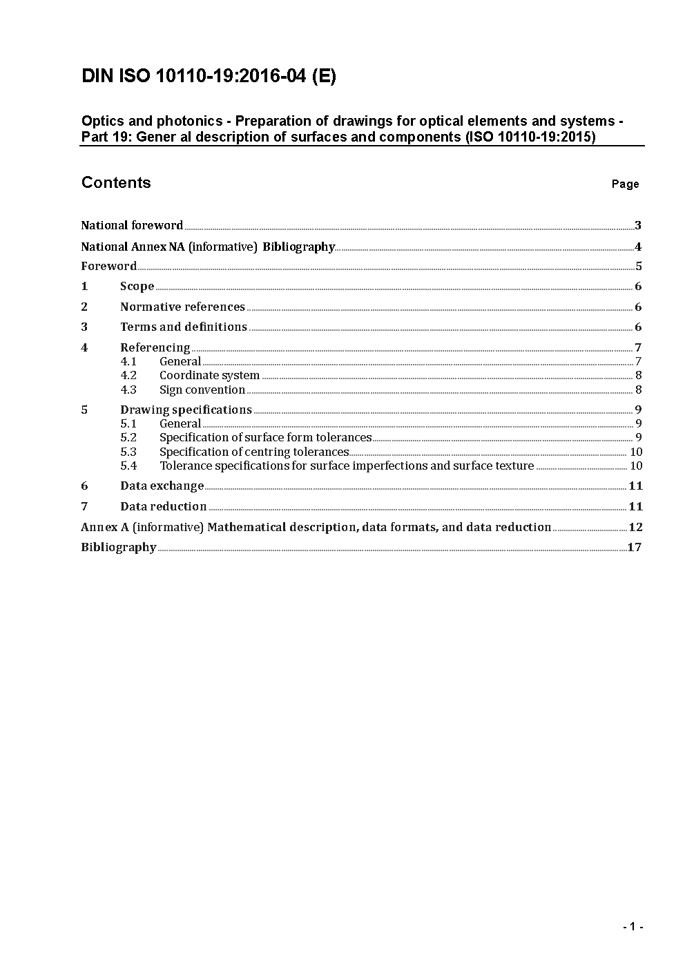 Optics and photonics - Preparation of drawings for optical elements and systems - Part 19: General description of surfaces and components (ISO 10110-19:2015)