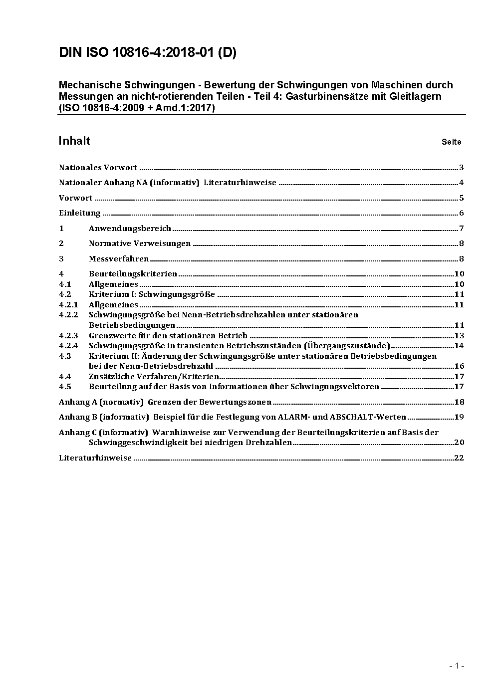 Mechanische Schwingungen - Bewertung der Schwingungen von Maschinen durch Messungen an nicht-rotierenden Teilen - Teil 4: Gasturbinensätze mit Gleitlagern - Änderung 1 (ISO 10816-4:2009/DAM 1:2016); Text Deutsch und Englisch
