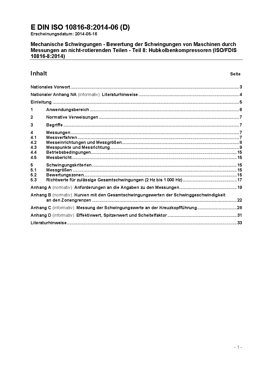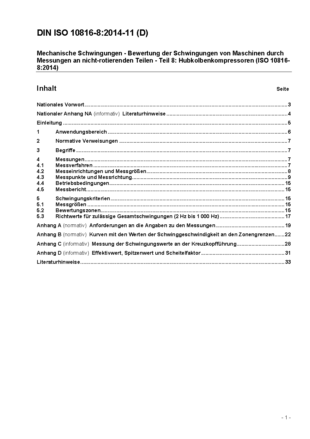 Mechanische Schwingungen - Bewertung der Schwingungen von Maschinen durch Messungen an nicht-rotierenden Teilen - Teil 8: Hubkolbenkompressoren - Änderung 1 (ISO 10816-8:2014/DAM 1:2017); Text Deutsch und Englisch