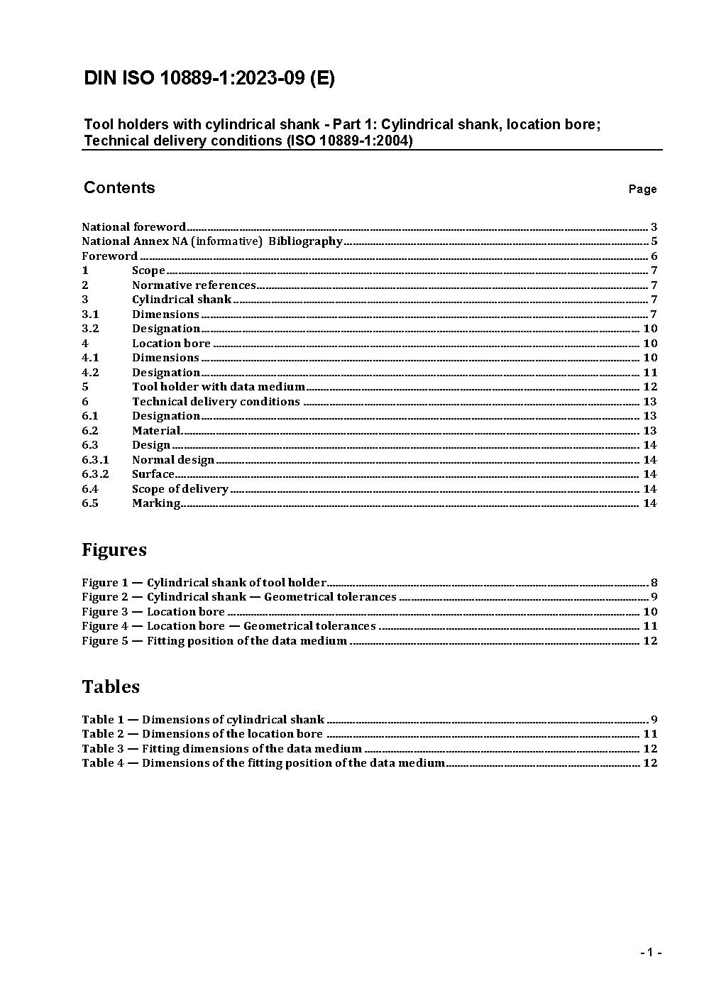 Tool holders with cylindrical shank - Part 1: Cylindrical shank, location bore; Technical delivery conditions (ISO 10889-1:2004)