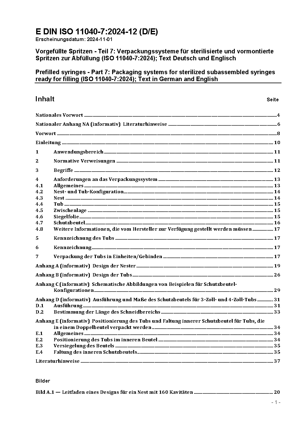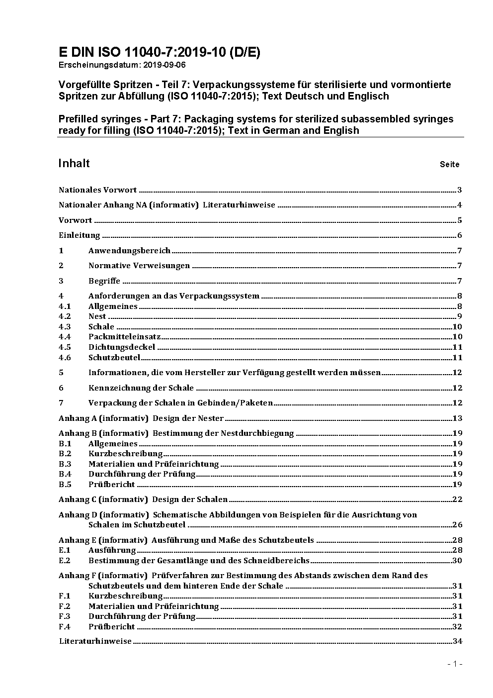 Vorgefüllte Spritzen - Teil 7: Verpackungssysteme für sterilisierte und vormontierte Spritzen zur Abfüllung (ISO 11040-7:2015)