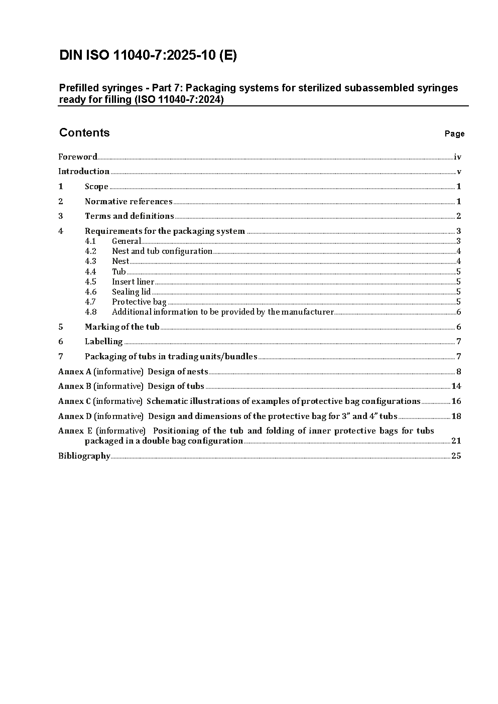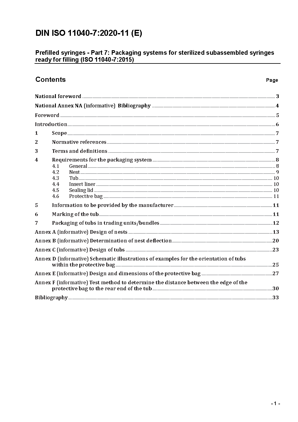 Prefilled syringes - Part 7: Packaging systems for sterilized subassembled syringes ready for filling (ISO 11040-7:2015)
