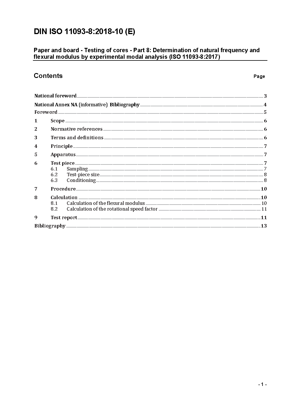 Paper and board - Testing of cores - Part 8: Determination of natural frequency and flexural modulus by experimental modal analysis (ISO 11093-8:2017); Text in German and English