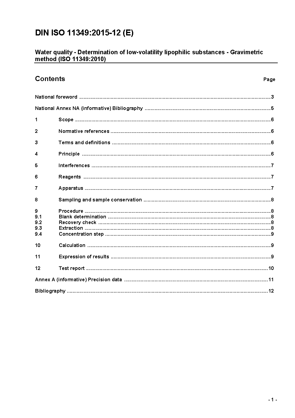 Water quality - Determination of low-volatility lipophilic substances - Gravimetric method (ISO 11349:2010)