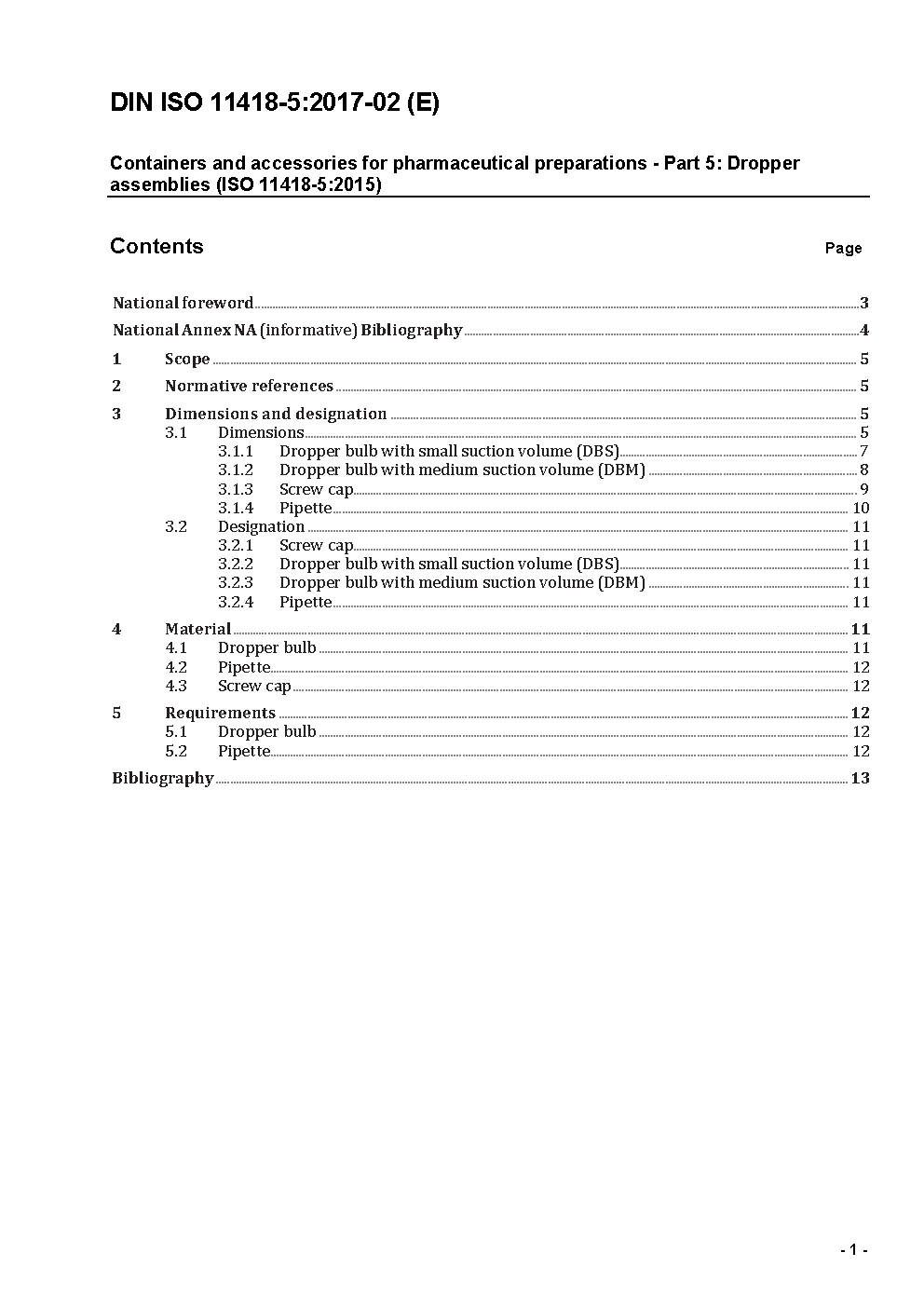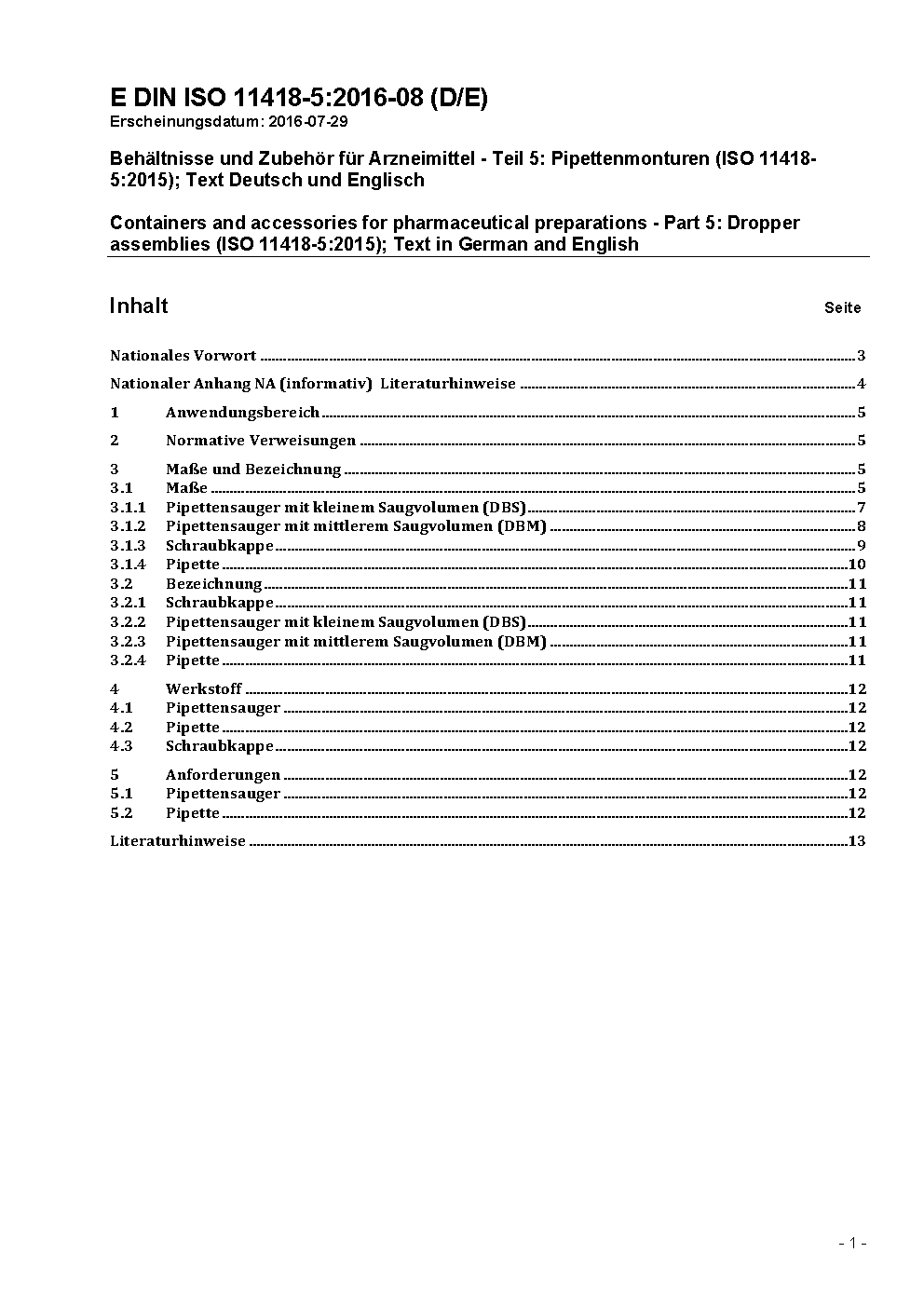 Behältnisse und Zubehör für Arzneimittel - Teil 5: Pipettenmonturen (ISO/DIS 11418-5-1996)