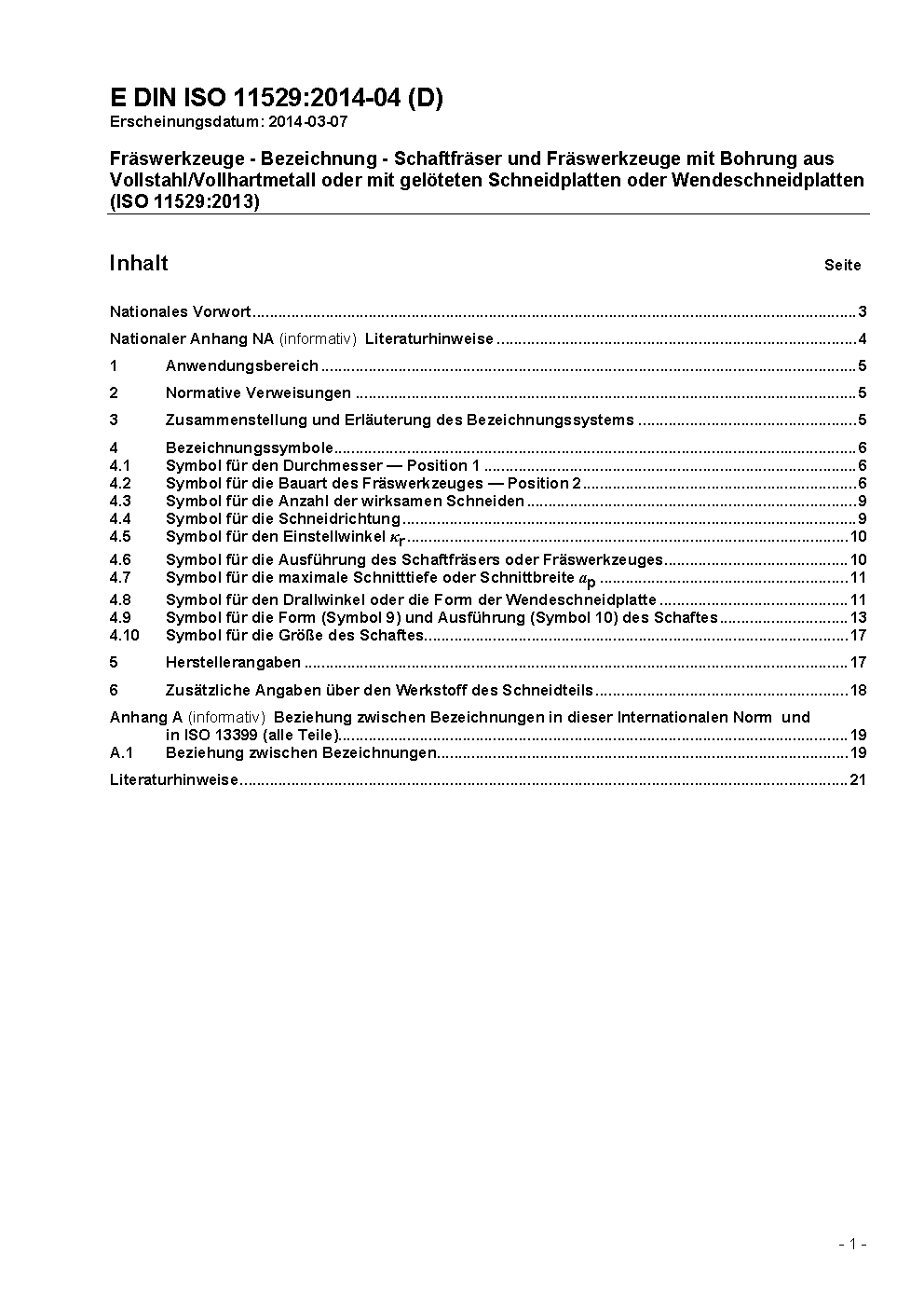 Fräswerkzeuge - Bezeichnung - Schaftfräser und Fräswerkzeuge mit Bohrung aus Vollstahl/Vollhartmetall oder mit gelöteten Schneidplatten oder Wendeschneidplatten (ISO 11529:2013)