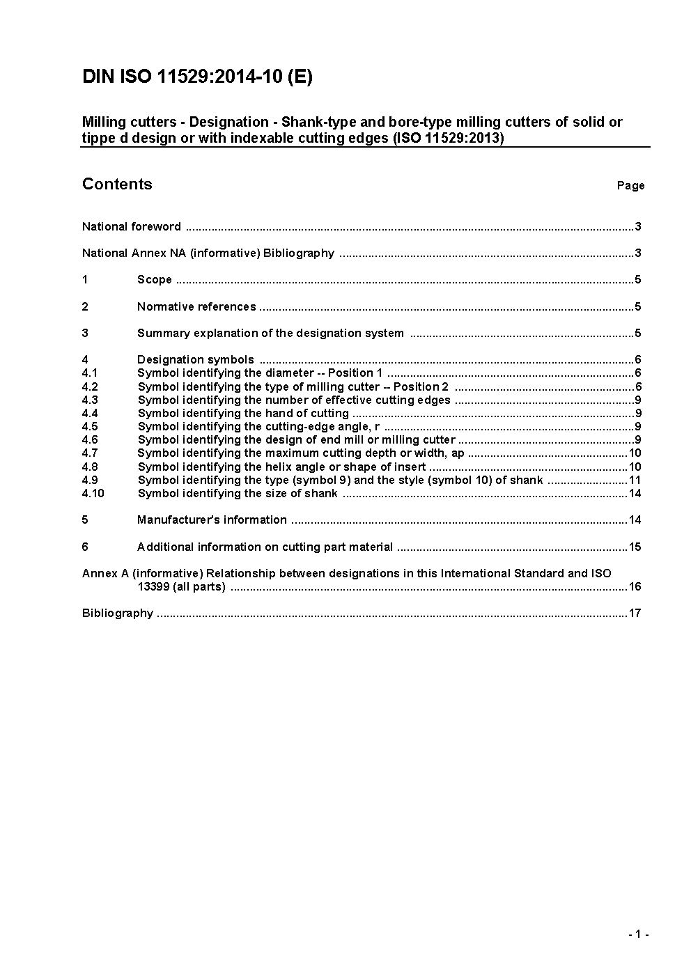 Milling cutters - Designation - Shank-type and bore-type milling cutters of solid or tipped design or with indexable cutting edges (ISO 11529:2013)