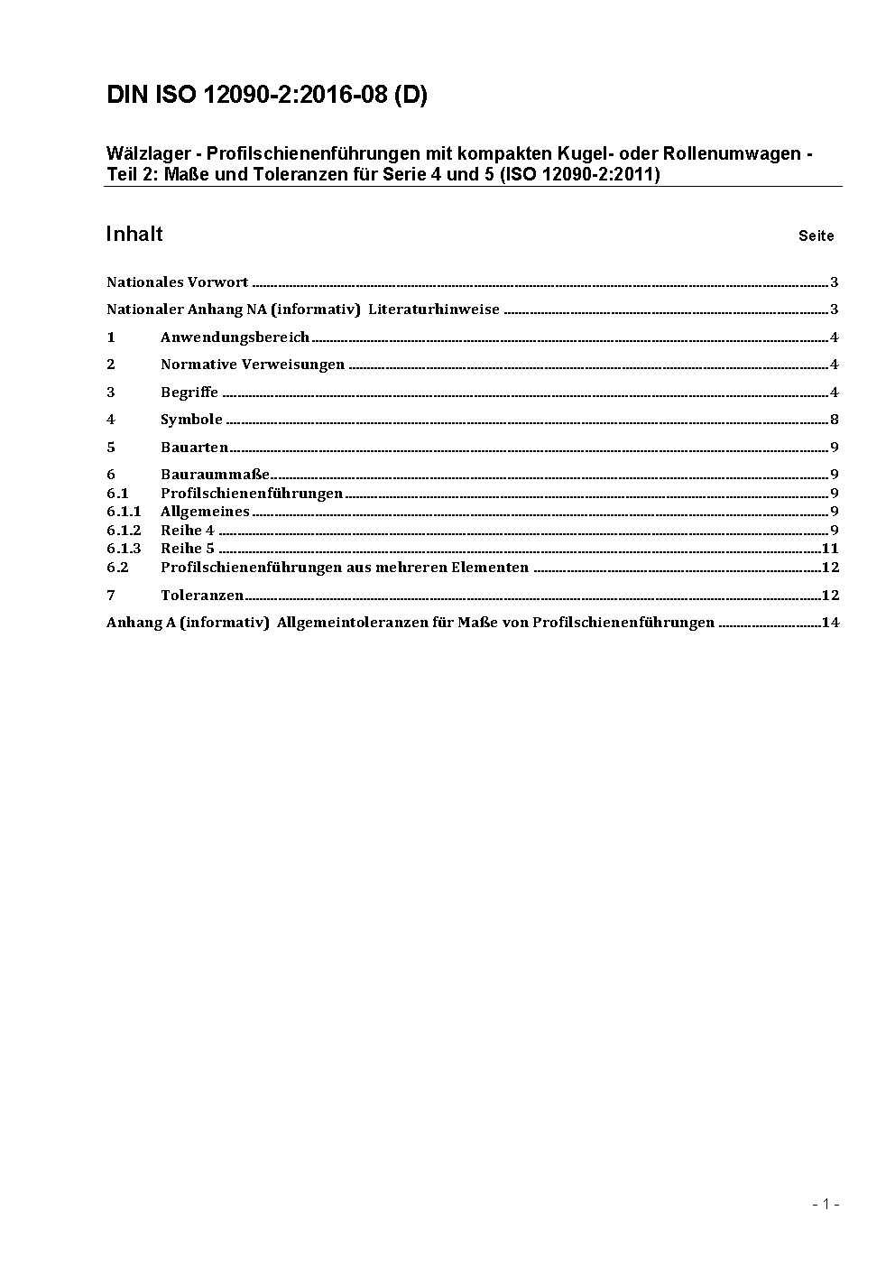 Wälzlager - Profilschienenführungen mit kompakten Kugel- oder Rollenumwagen - Teil 2: Maße und Toleranzen für Serie 4 und 5 (ISO 12090-2:2011)