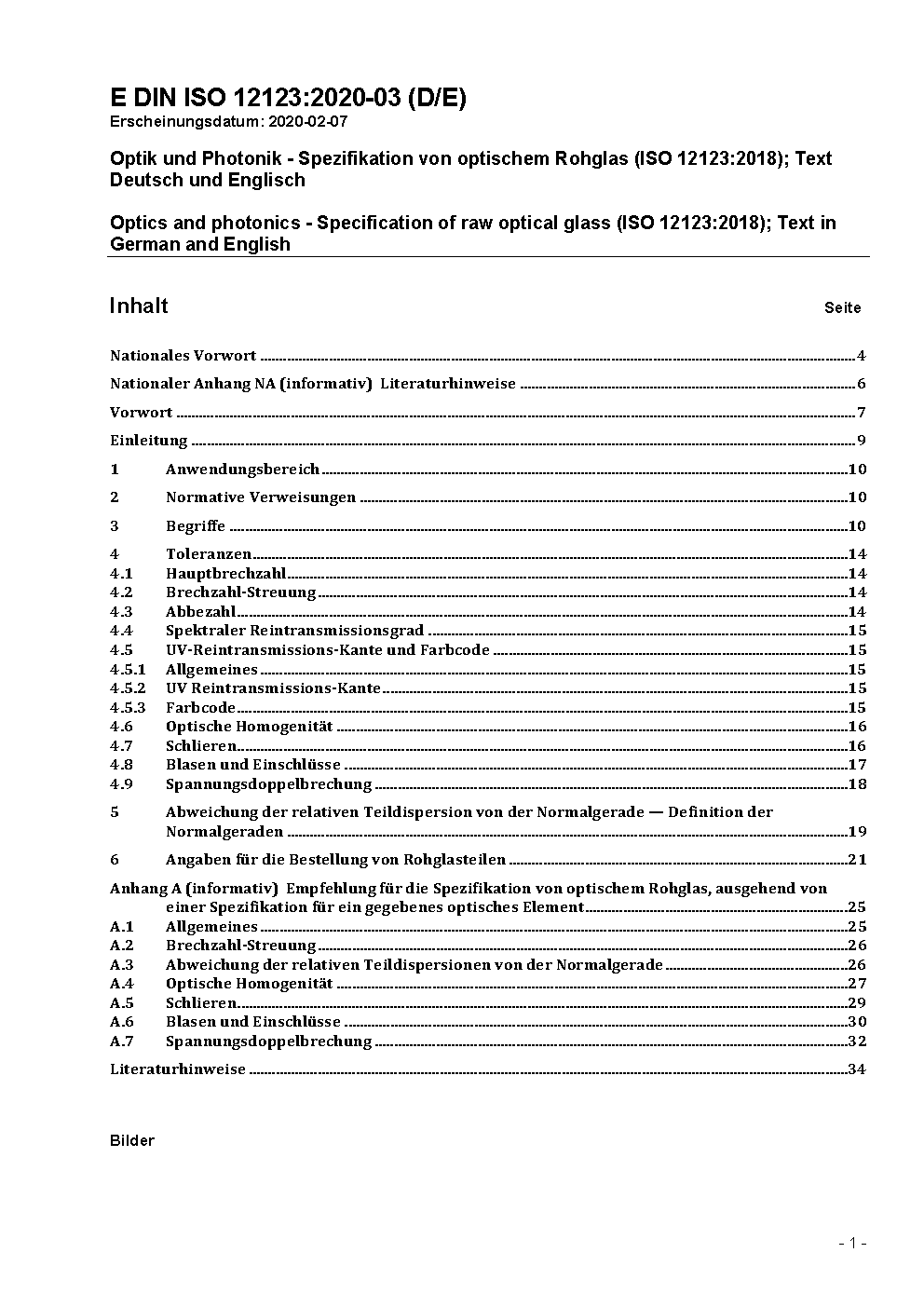 Optik und Photonik - Spezifikation von optischem Rohglas (ISO 12123:2010)