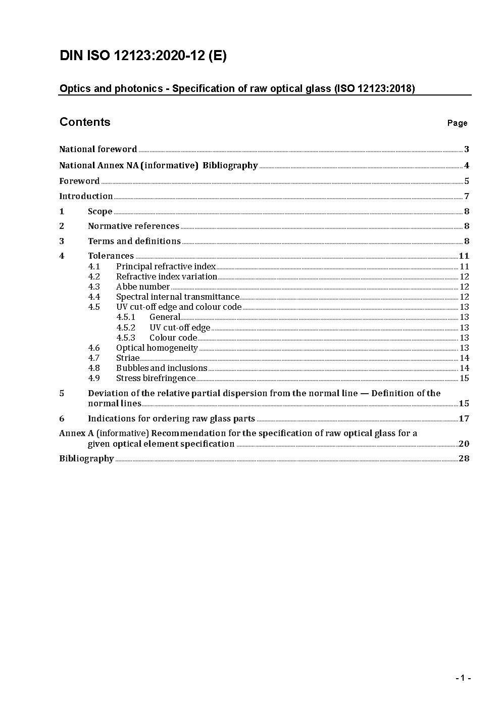 Optics and photonics - Specification of raw optical glass (ISO 12123:2010)