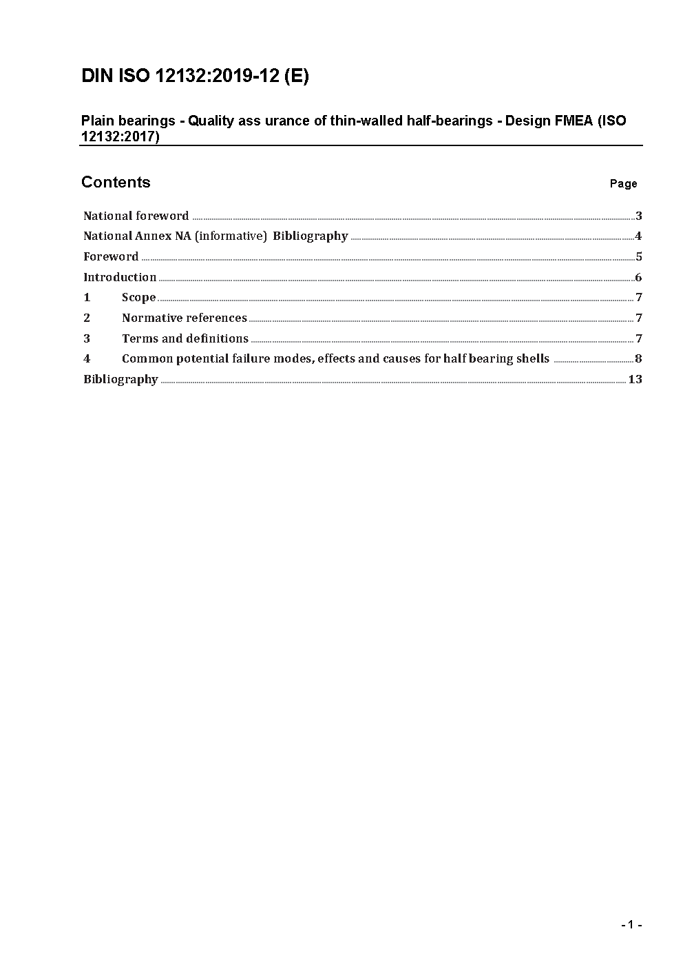 Plain bearings - Quality assurance of thin-walled half-bearings - Design FMEA; identical with ISO/DIS 12132:1995
