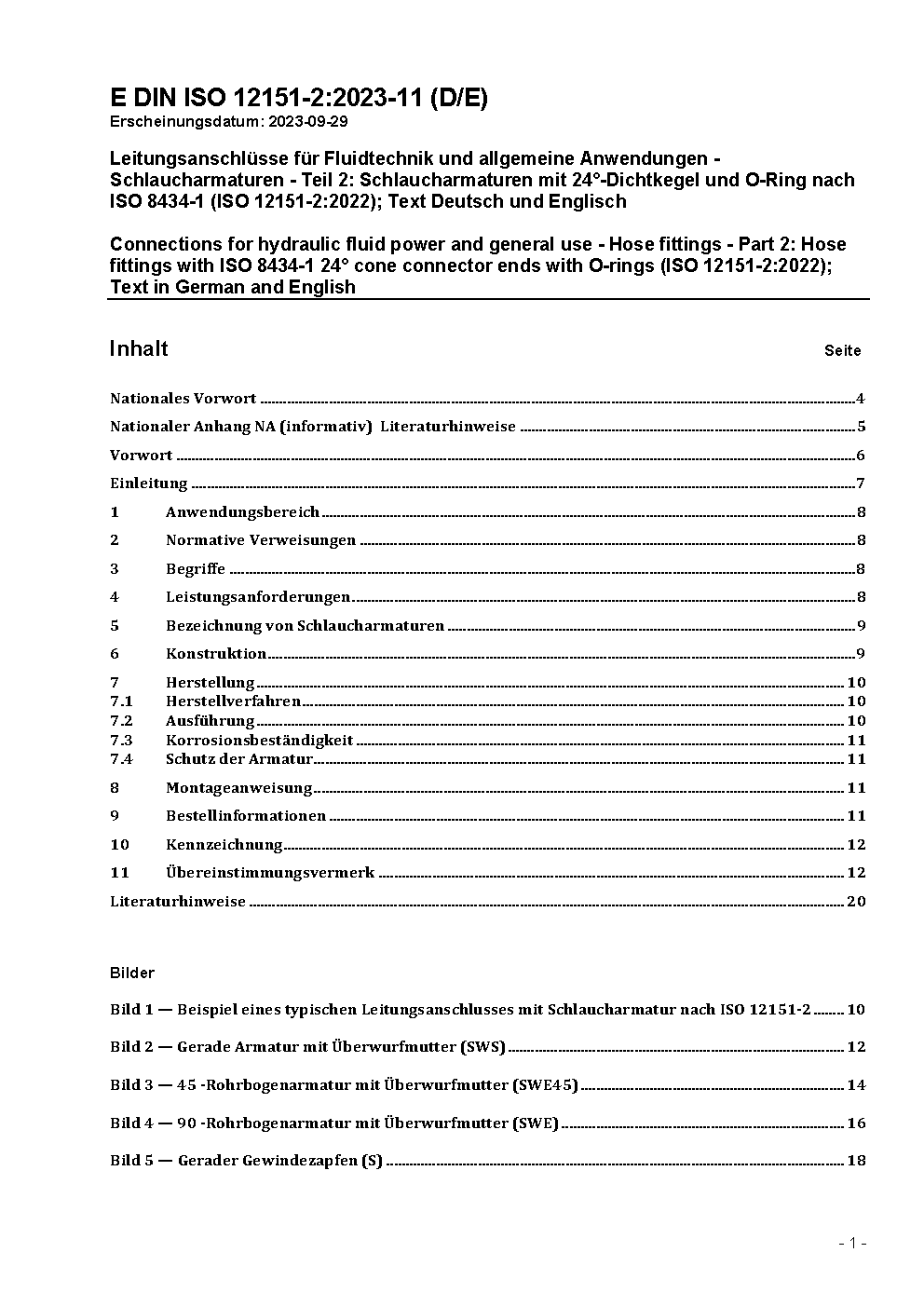 Leitungsanschlüsse für Fluidtechnik und allgemeine Anwendungen - Schlaucharmaturen - Teil 2: Schlaucharmaturen mit 24°-Dichtkegel und O-Ring nach ISO 8434-1 (ISO 12151-2:2022); Text Deutsch und Englisch