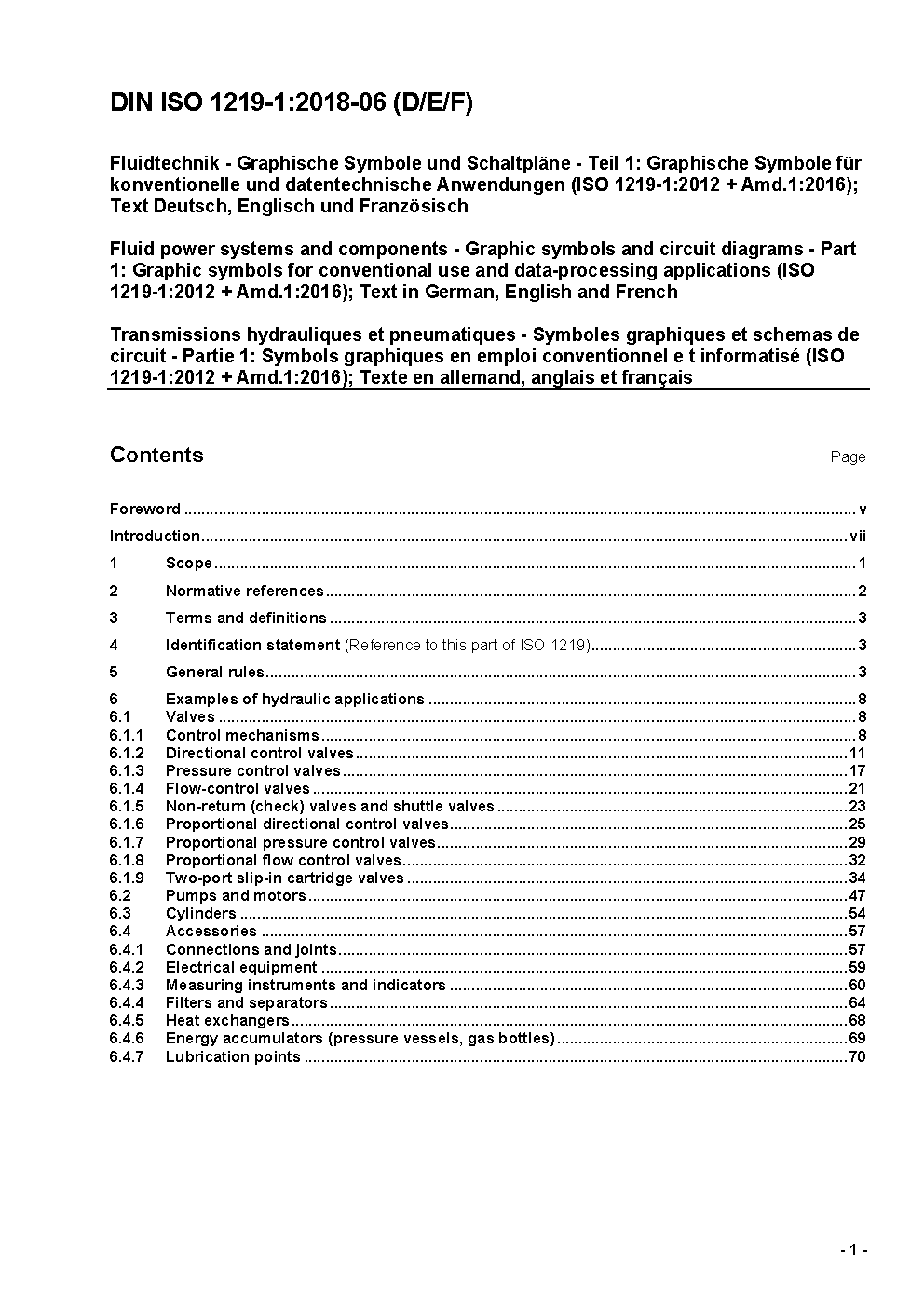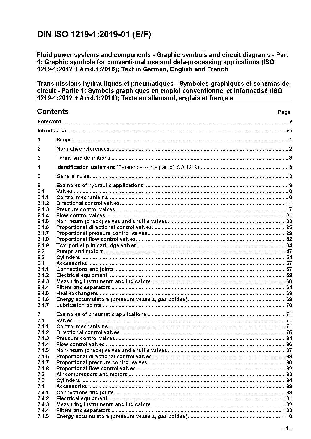 Fluidtechnik - Graphische Symbole und Schaltpläne - Teil 1: Graphische Symbole für konventionelle und datentechnische Anwendungen (ISO/DIS 1219-1:2004)