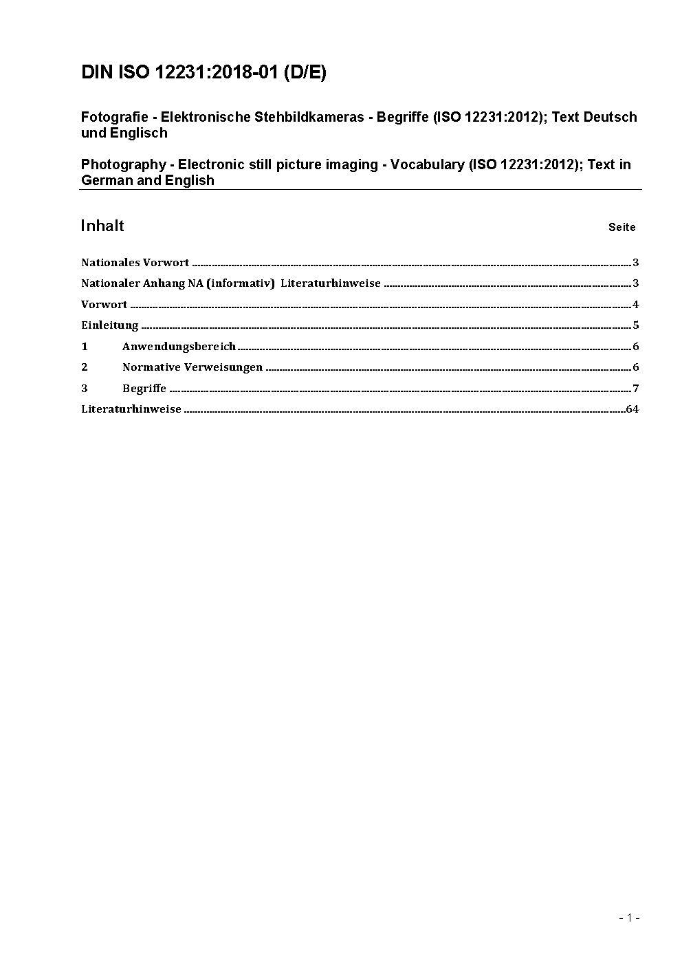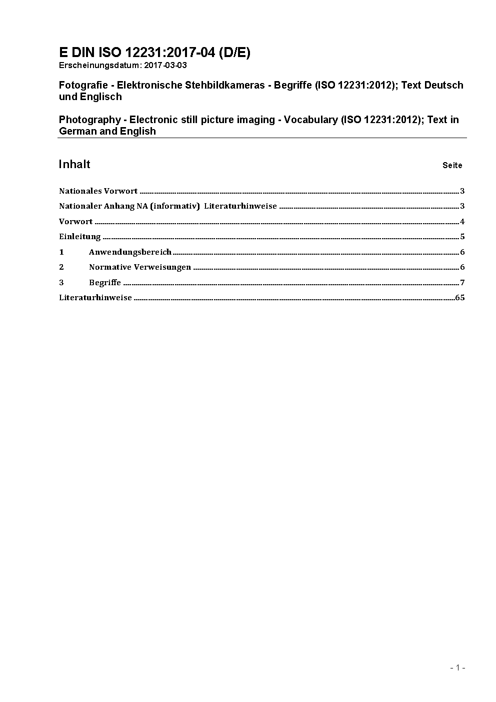Photography - Electronic still picture imaging - Vocabulary (ISO 12231:2012); Text in German and English