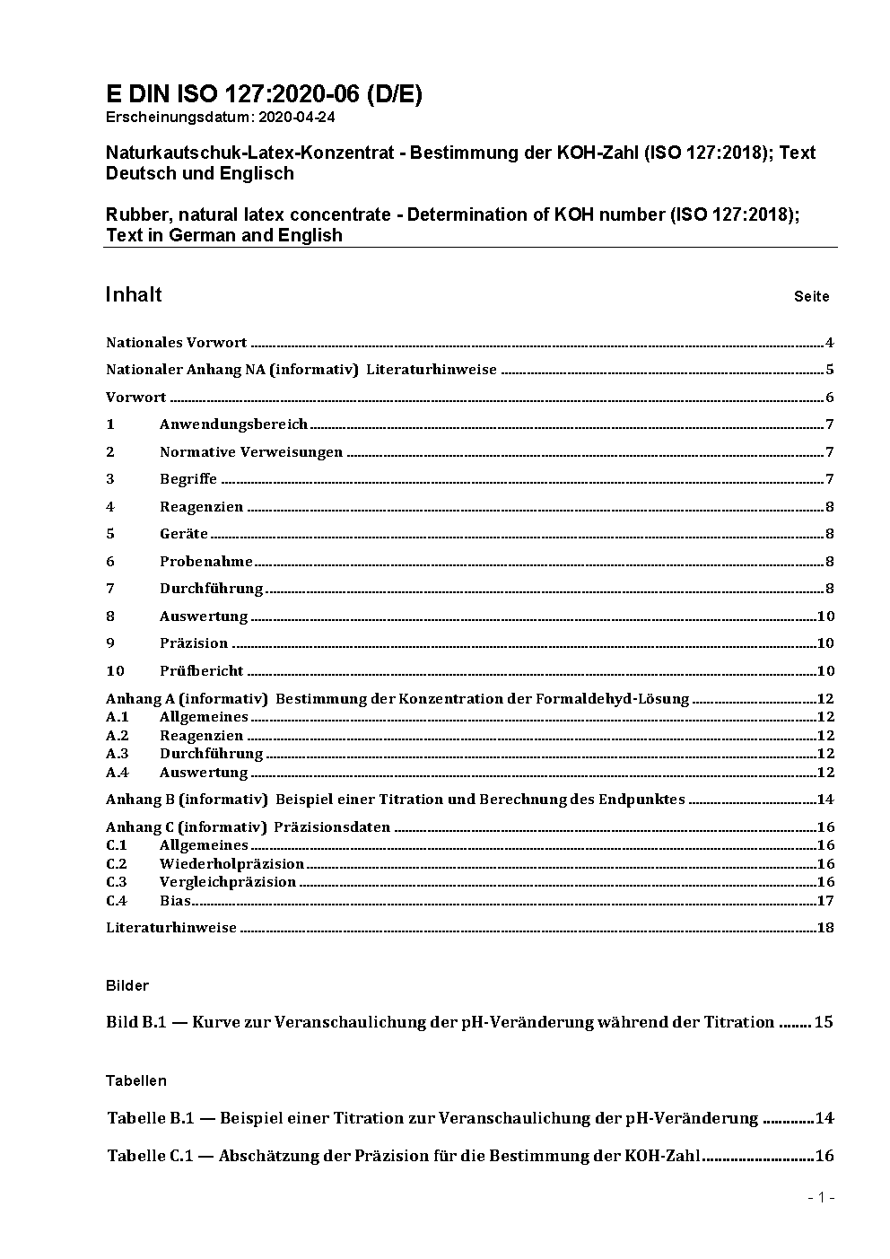Naturkautschuk-Latex-Konzentrat - Bestimmung der KOH-Zahl (ISO 127:2012)