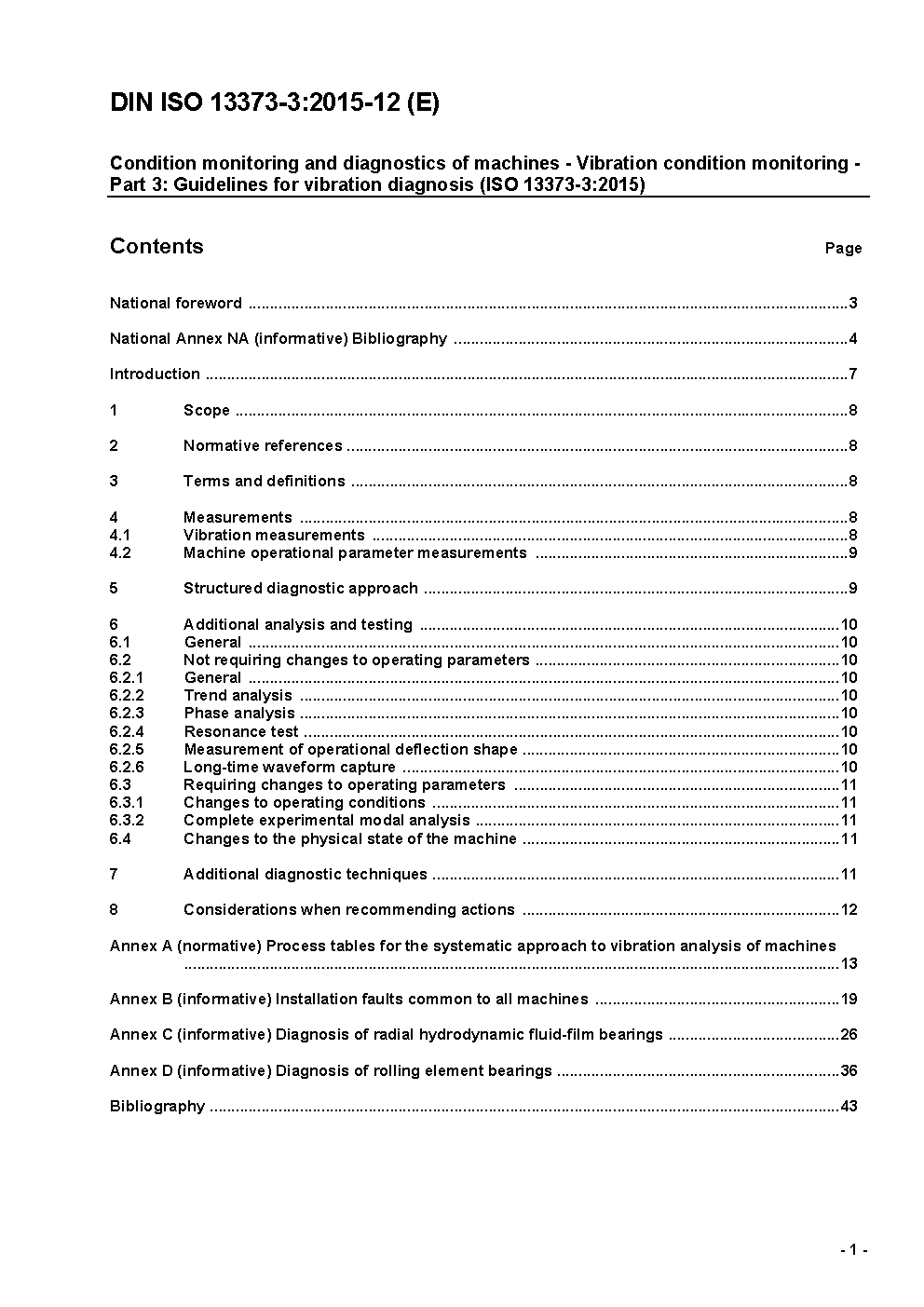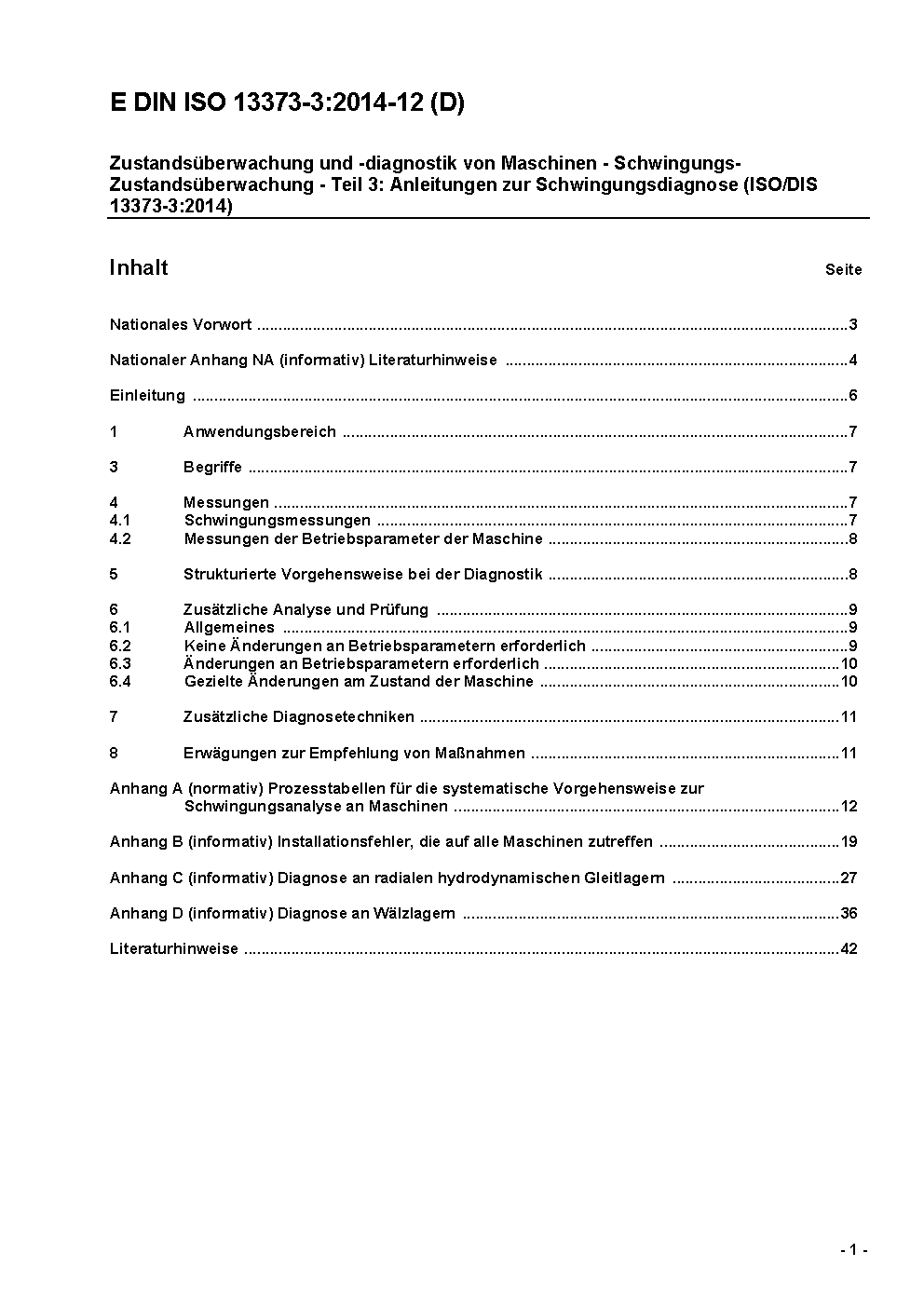 Zustandsüberwachung und -diagnostik von Maschinen - Schwingungs-Zustandsüberwachung - Teil 3: Anleitungen zur Schwingungsdiagnose (ISO/DIS 13373-3:2014)