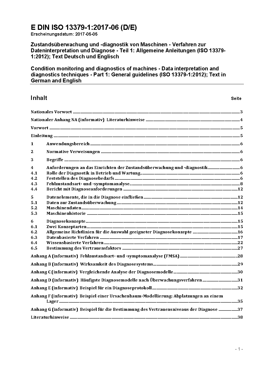 Zustandsüberwachung und -diagnostik von Maschinen - Verfahren zur Dateninterpretation und Diagnostik - Teil 1: Allgemeine Anleitungen (ISO 13379-1:2012)