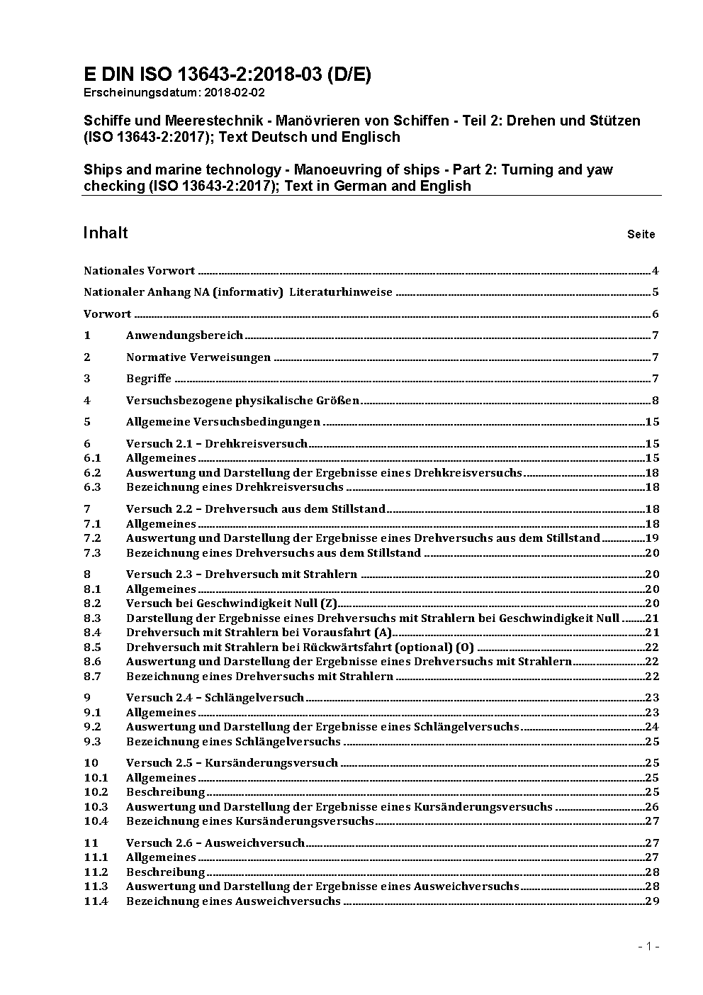 Ships and marine technology - Manoeuvring of ships - Part 2: Turning and yaw checking (ISO 13643-2:2017); Text in German and English