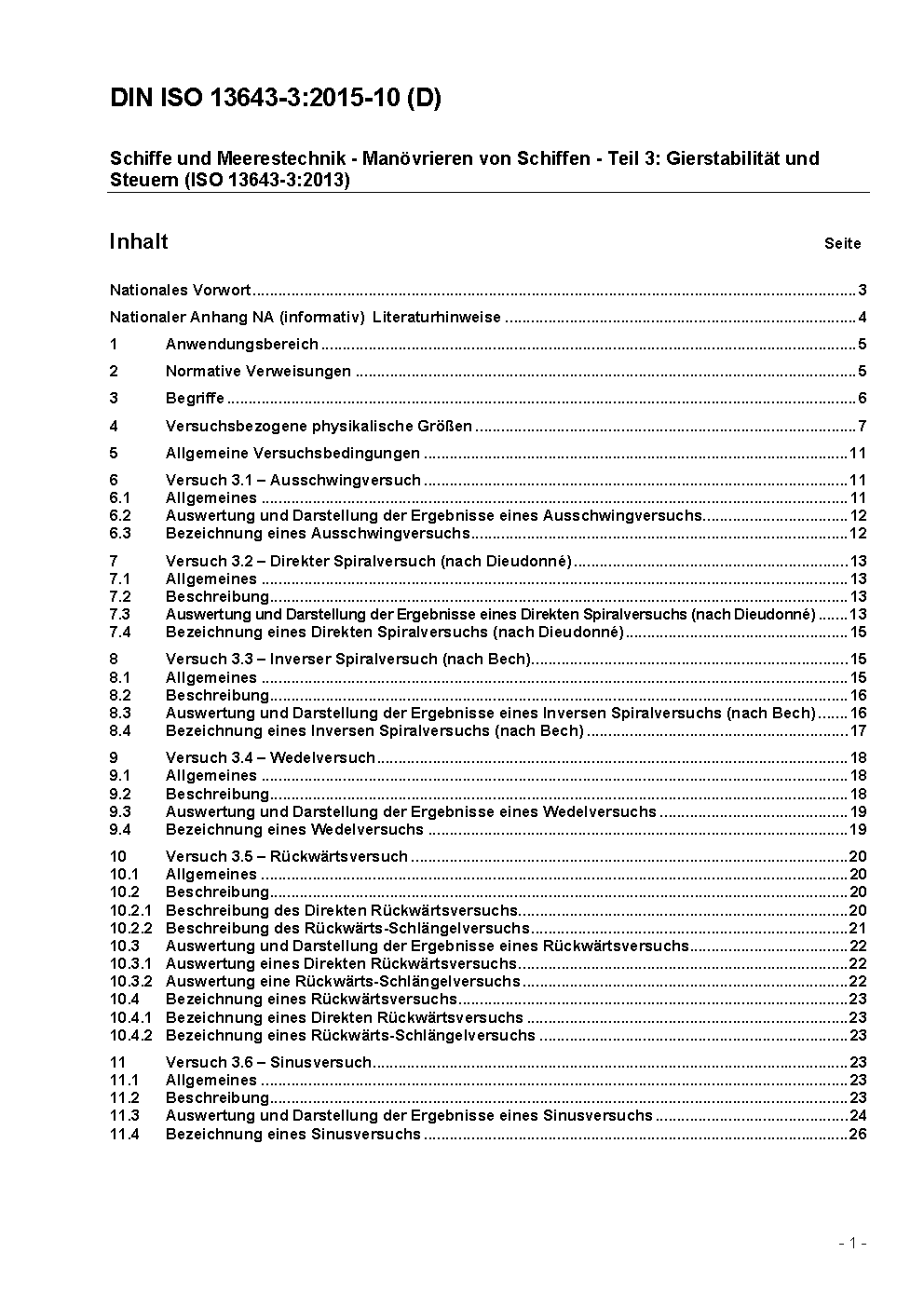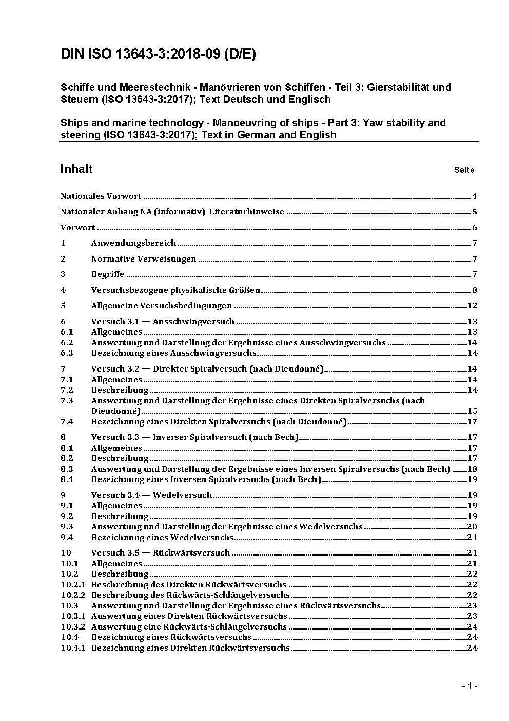 Schiffe und Meerestechnik - Manövrieren von Schiffen - Teil 3: Gierstabilität und Steuern (ISO 13643-3:2017); Text Deutsch und Englisch