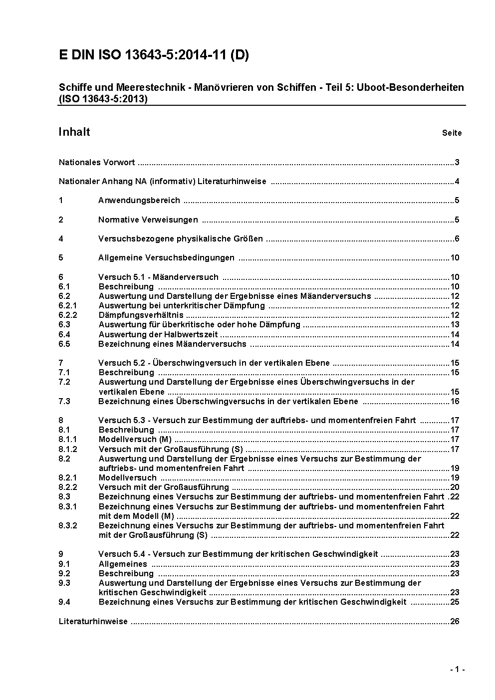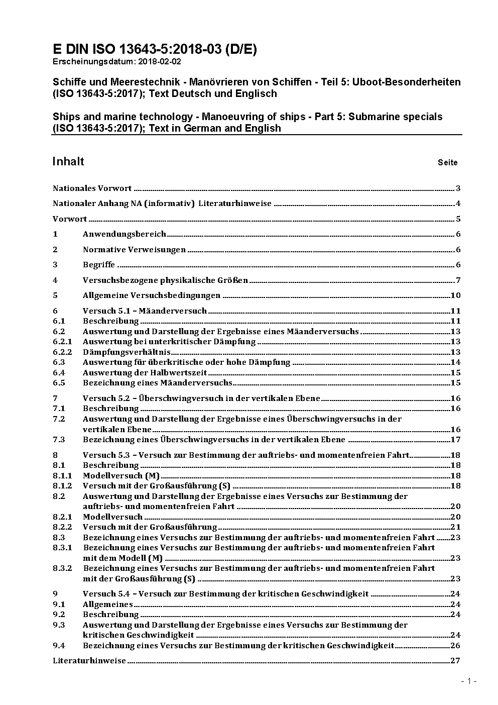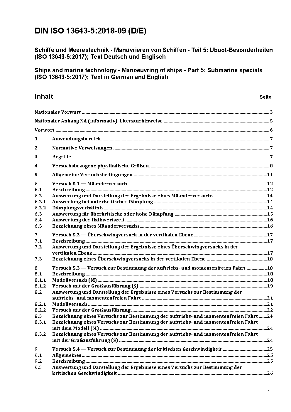 Schiffe und Meerestechnik - Manövrieren von Schiffen - Teil 5: Uboot-Besonderheiten (ISO 13643-5:2013)