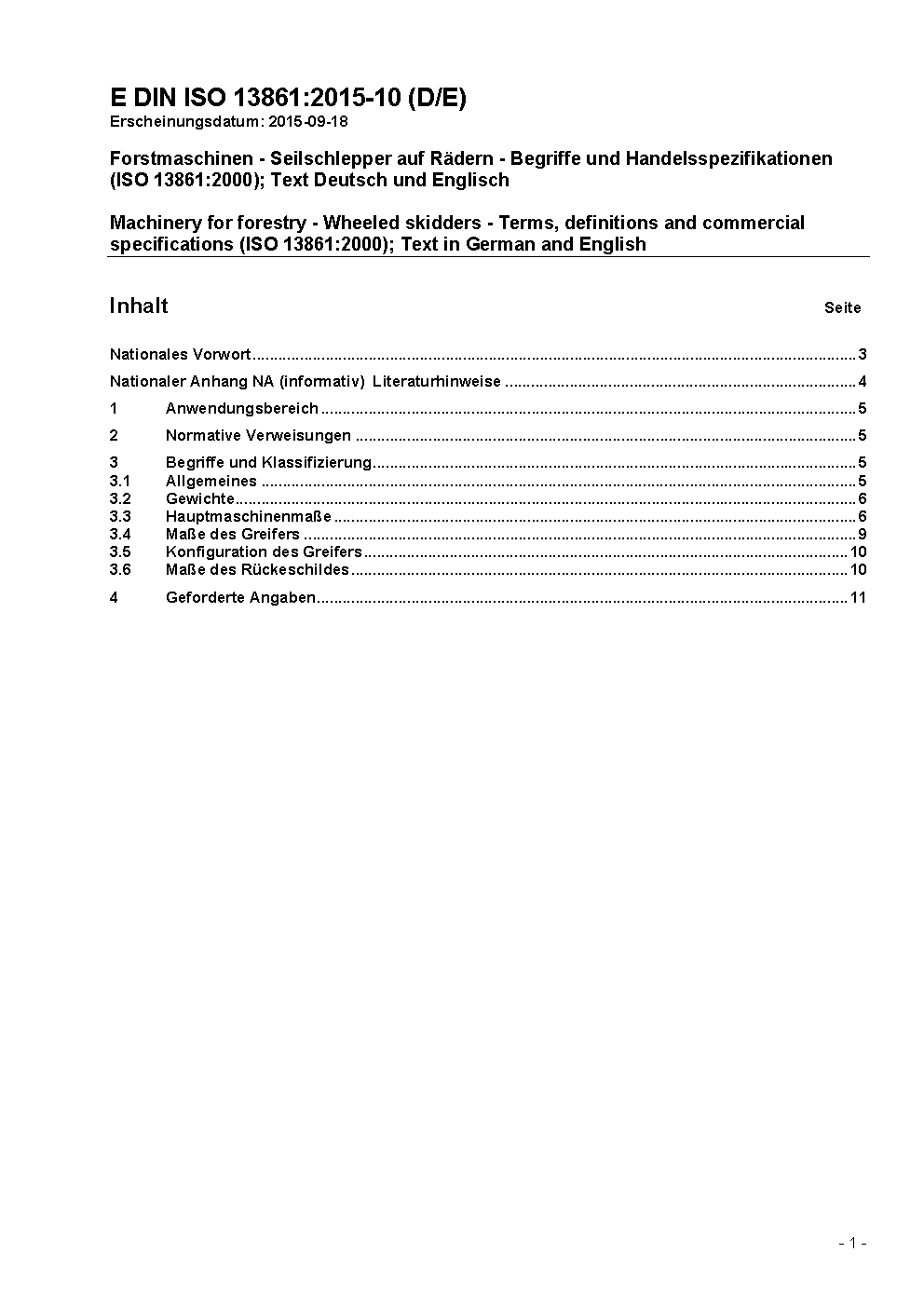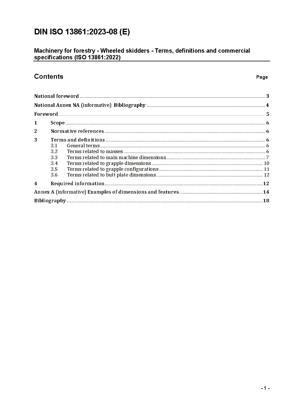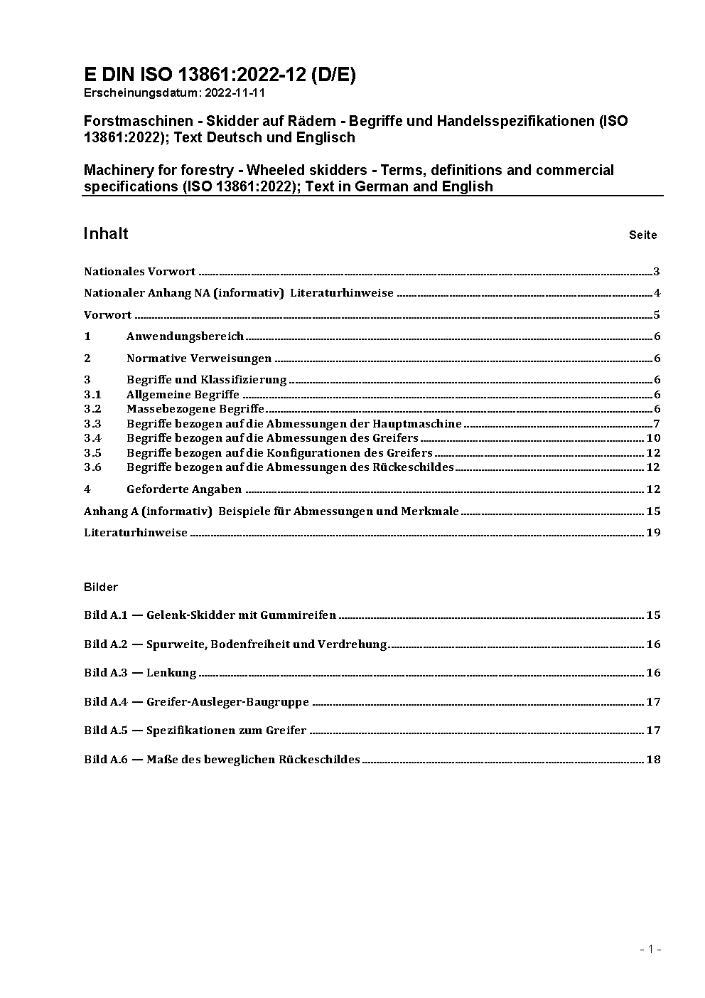 Forstmaschinen - Skidder auf Rädern - Begriffe und Handelsspezifikationen (ISO 13861:2022)