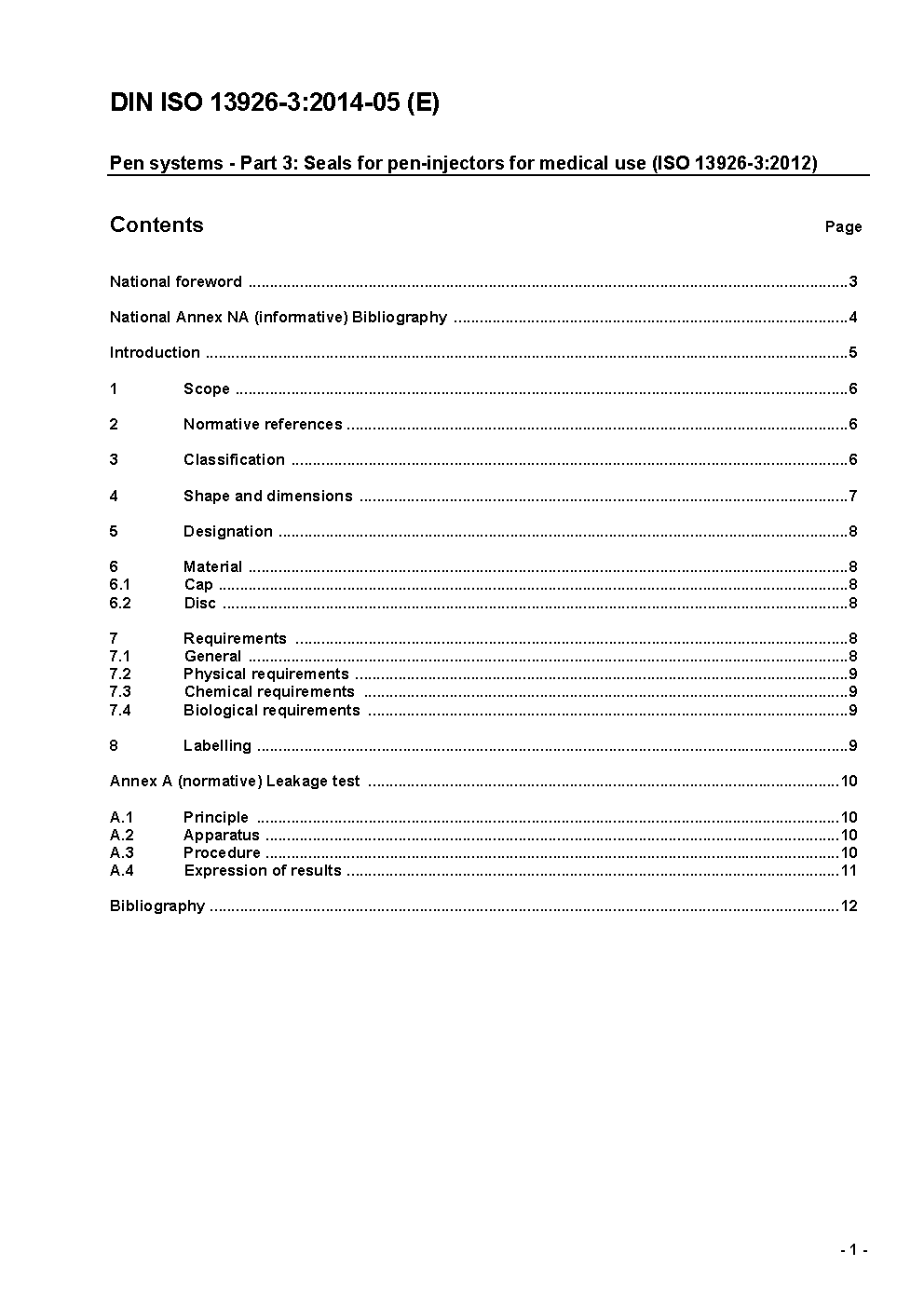 Pen Systeme - Teil 3: Dichtungen für Pen-Injektoren zur medizinischen Verwendung (ISO 13926-3:2012)