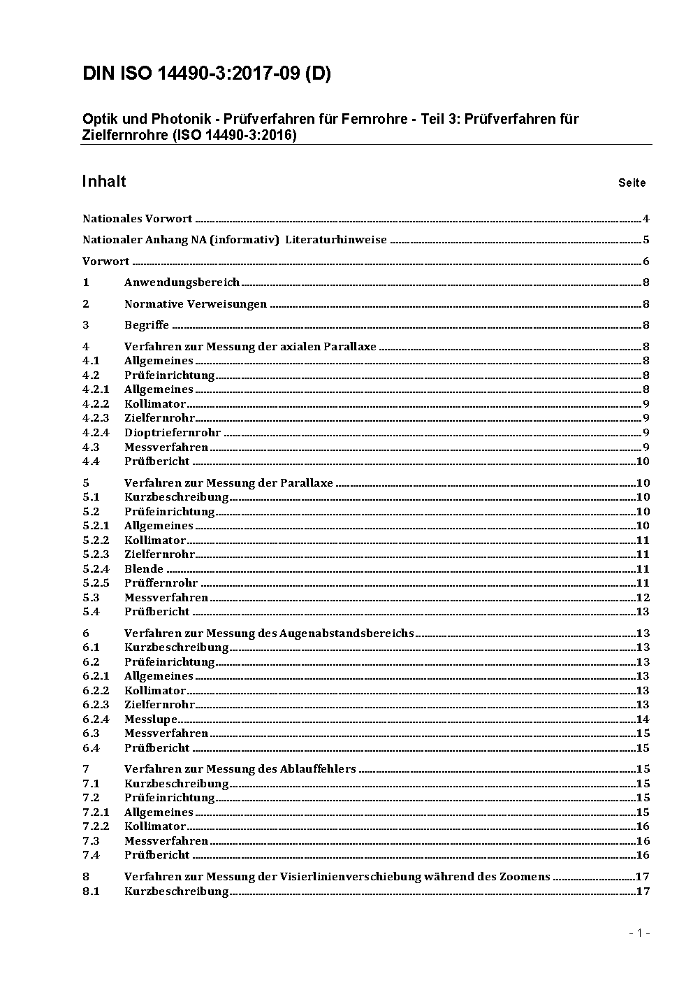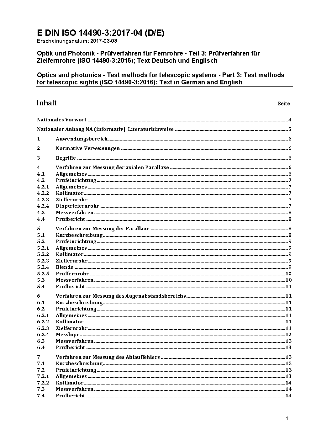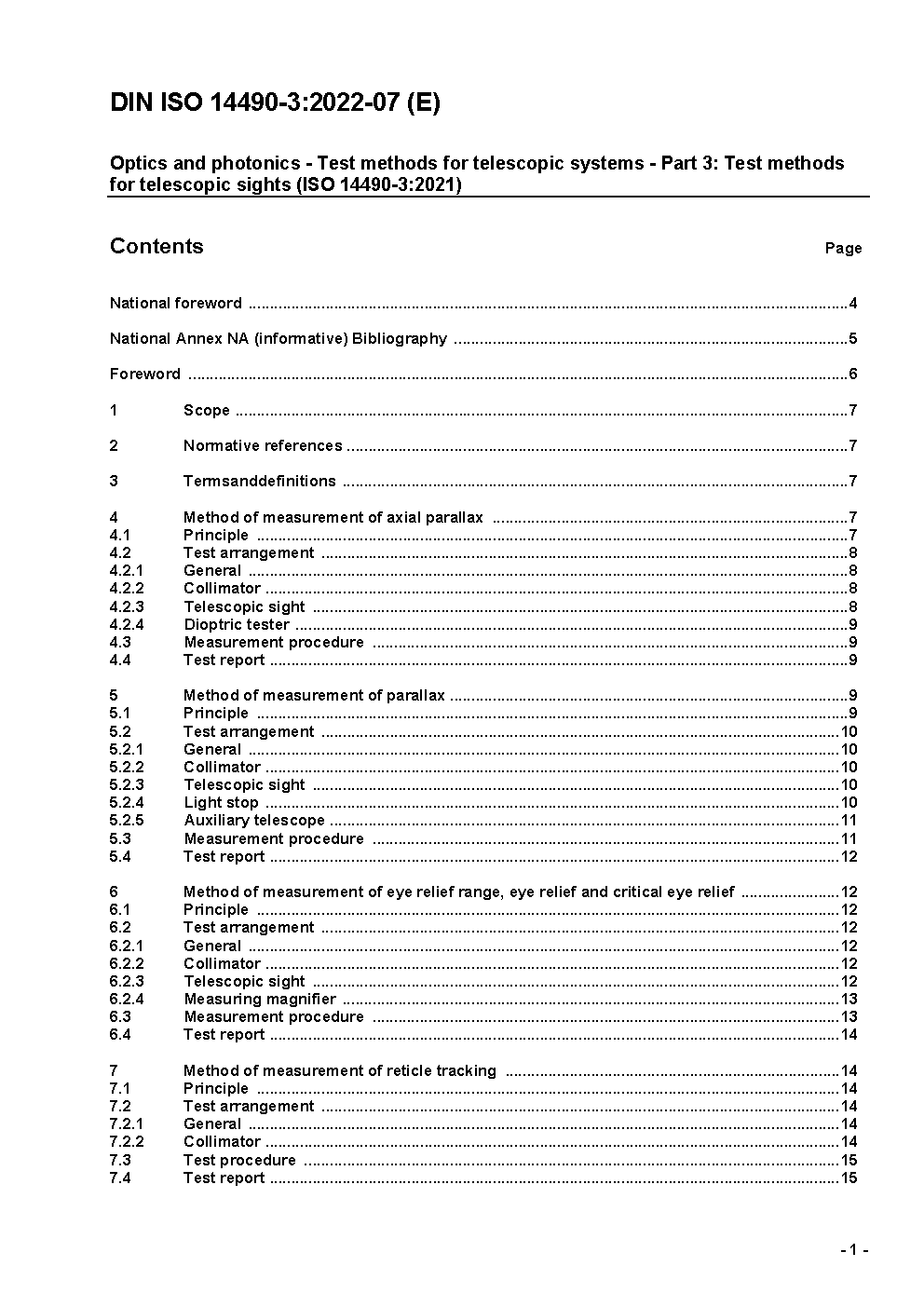 Optik und optische Instrumente - Prüfverfahren für Fernrohre - Teil 3: Prüfverfahren für Zielfernrohre (ISO 14490-3:2004)