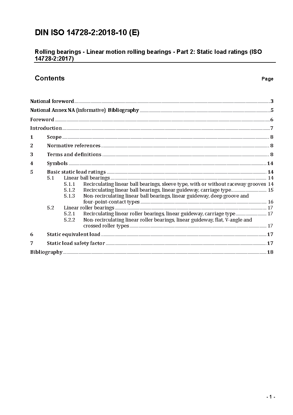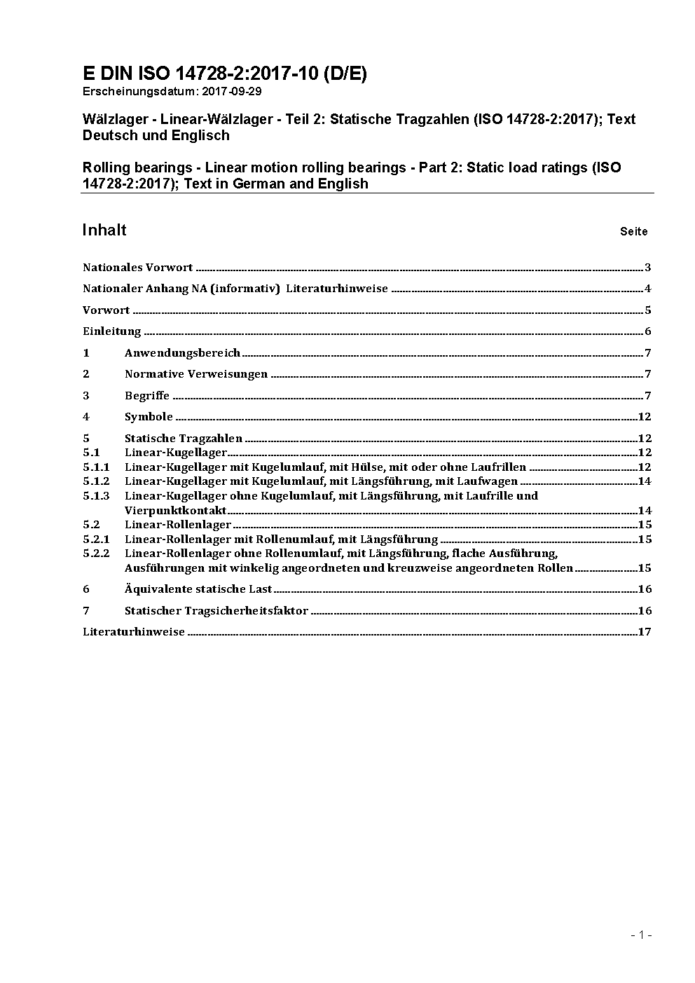 Wälzlager - Linear-Wälzlager - Teil 2: Statische Tragzahlen (ISO 14728-2:2004)
