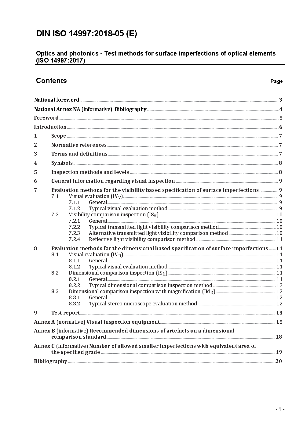 Optics and photonics - Test methods for surface imperfections of optical elements (ISO 14997:2011)