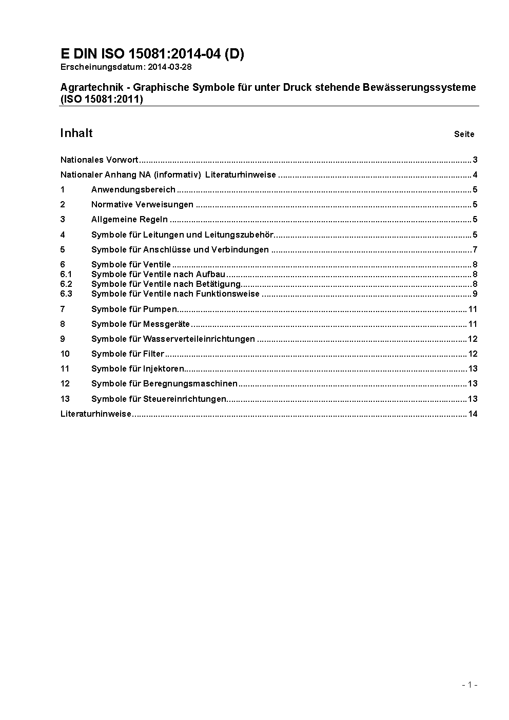 Agrartechnik - Graphische Symbole für unter Druck stehende Bewässerungssysteme (ISO 15081:2011)