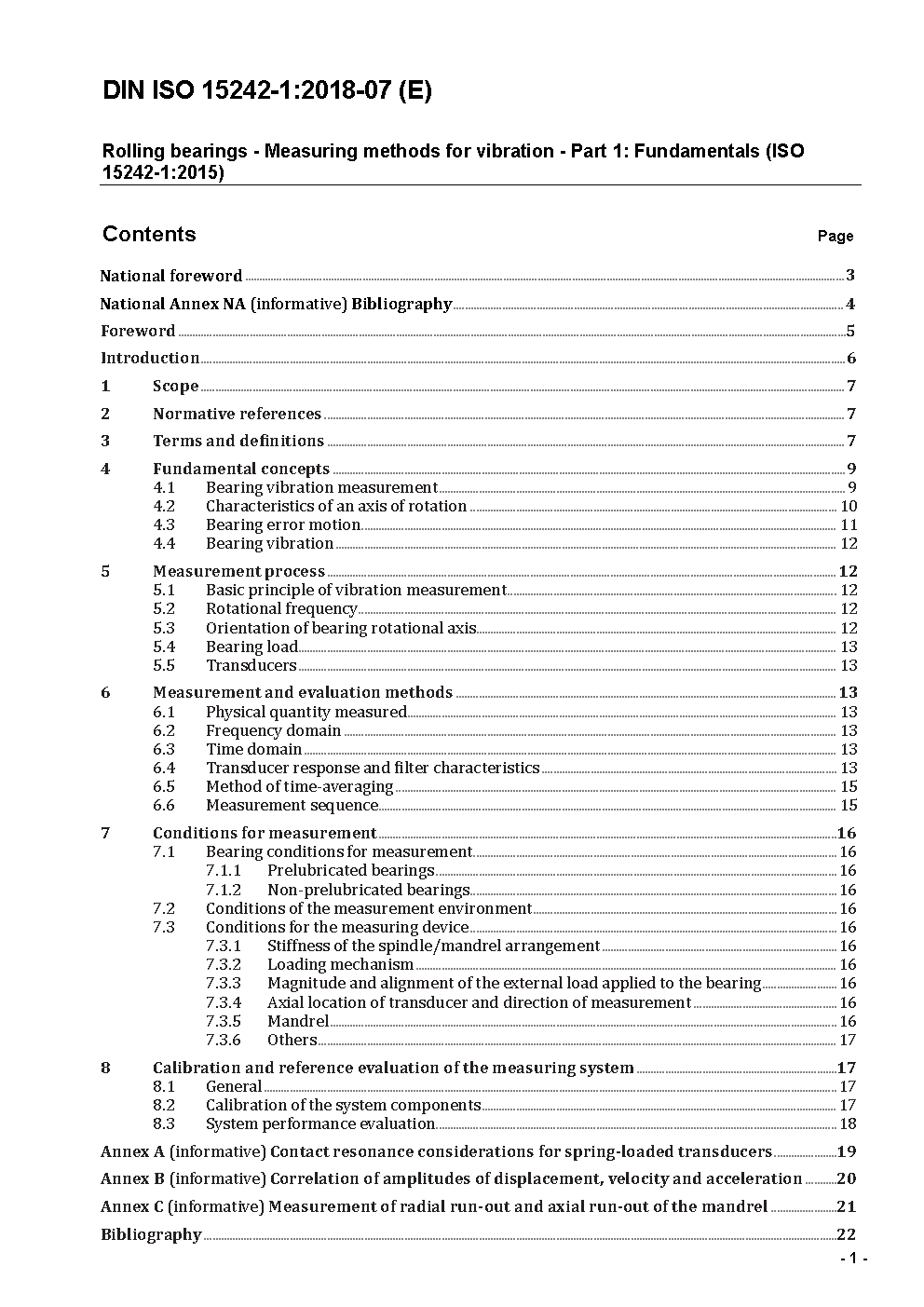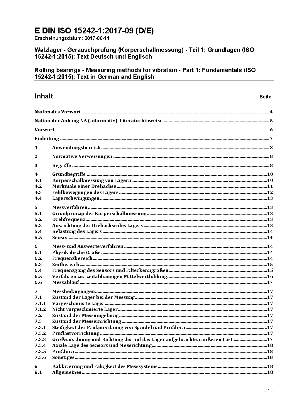 Wälzlager - Geräuschprüfung (Körperschallmessung) - Teil 1: Grundlagen (ISO 15242-1:2004)