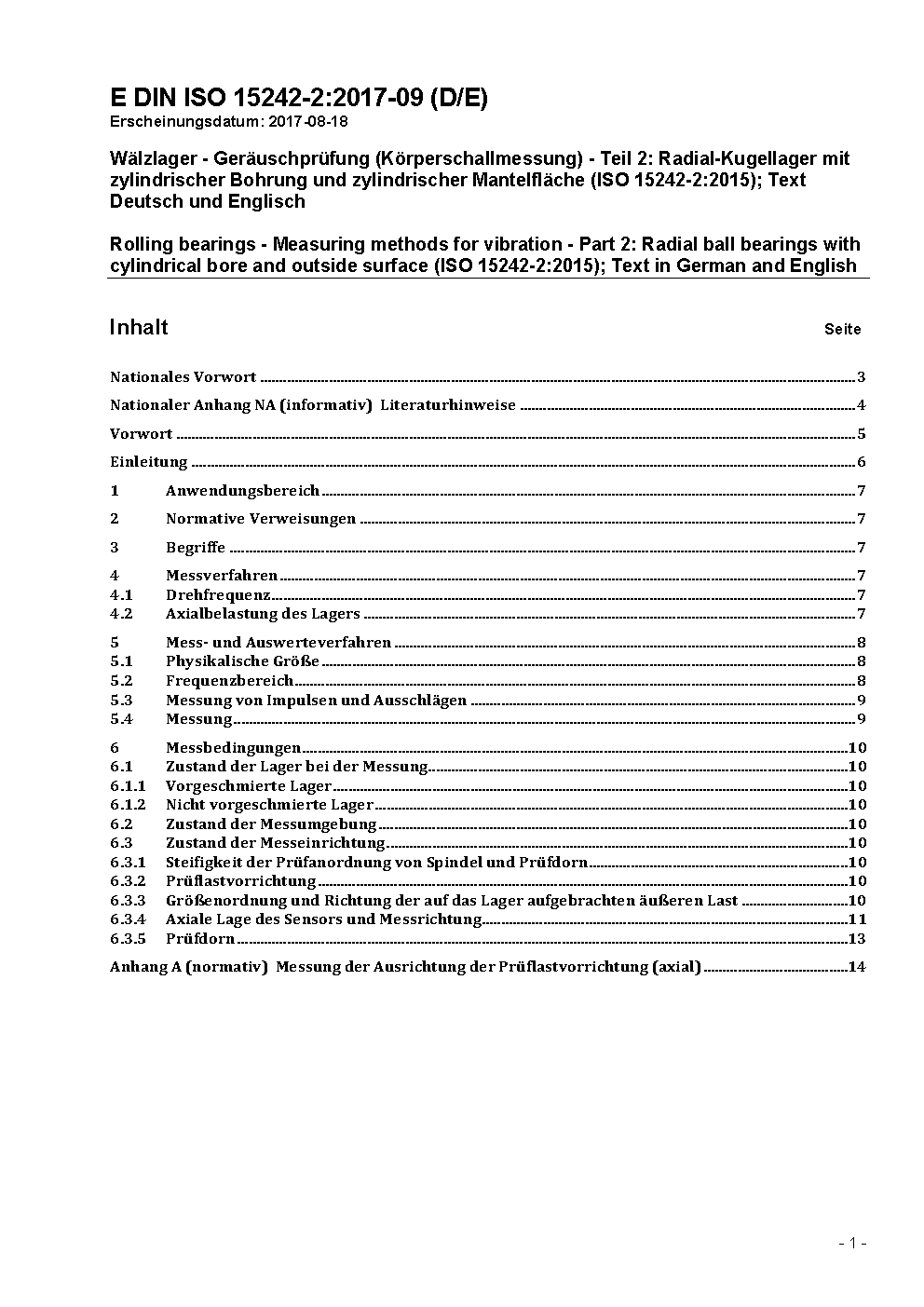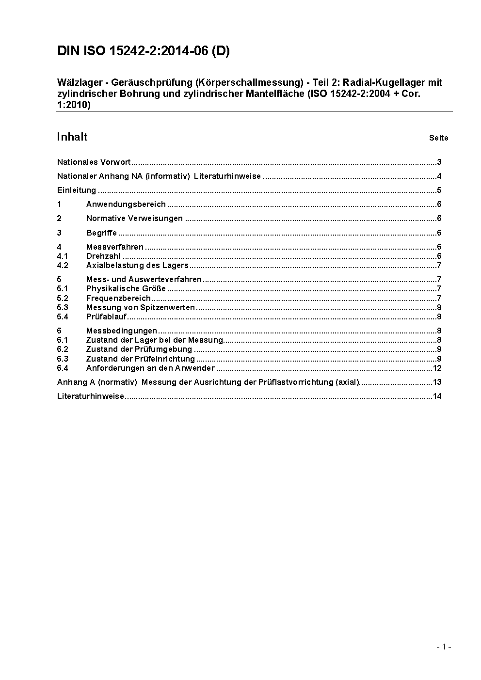 Wälzlager - Geräuschprüfung (Körperschallmessung) - Teil 2: Radial-Kugellager mit zylindrischer Bohrung und zylindrischer Mantelfläche (ISO 15242-2:2004 + Cor. 1:2010)