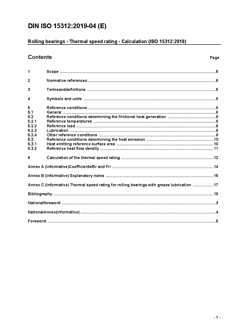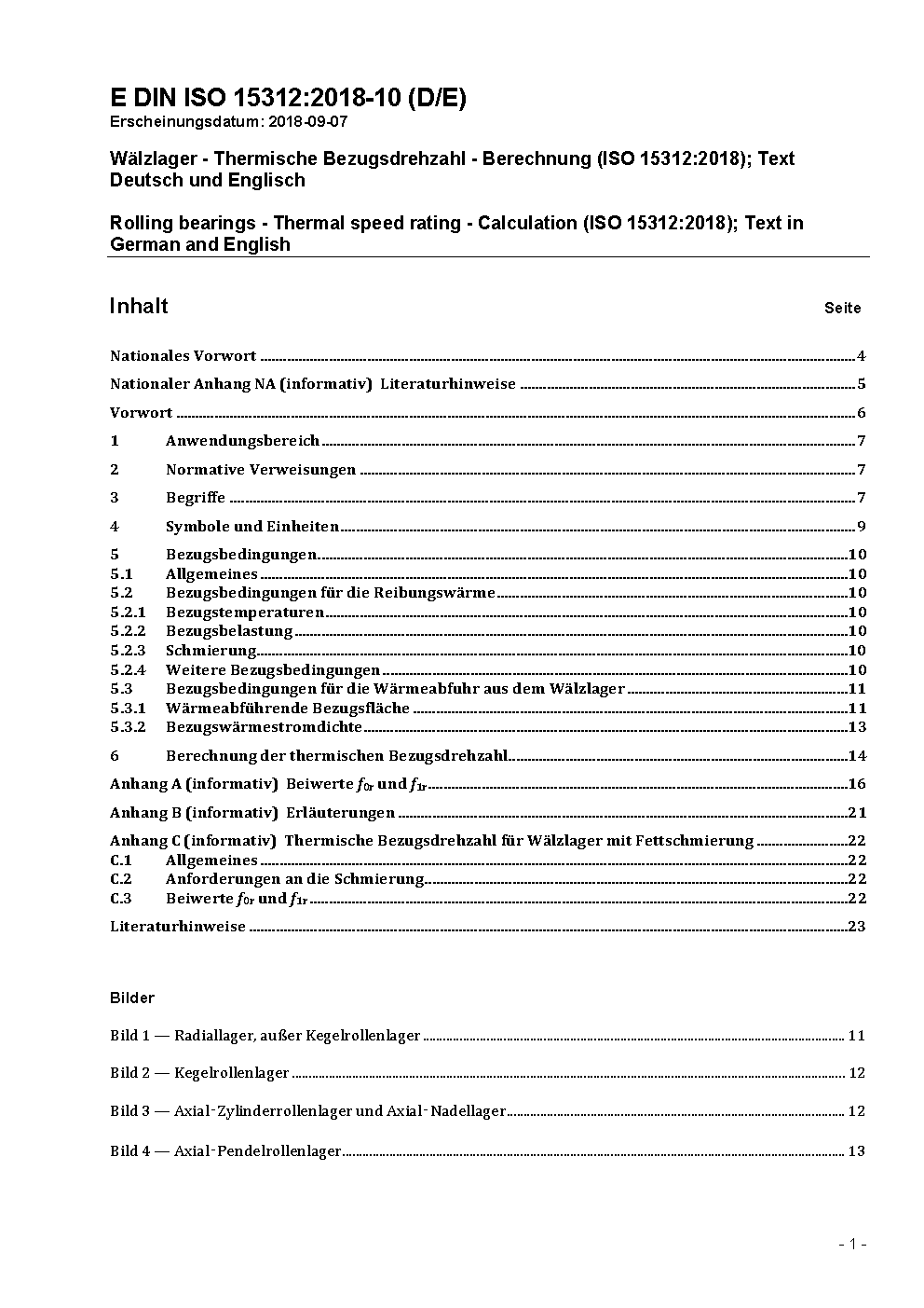 Wälzlager - Thermische Bezugsdrehzahl - Berechnung und Beiwerte (ISO 15312:2003)