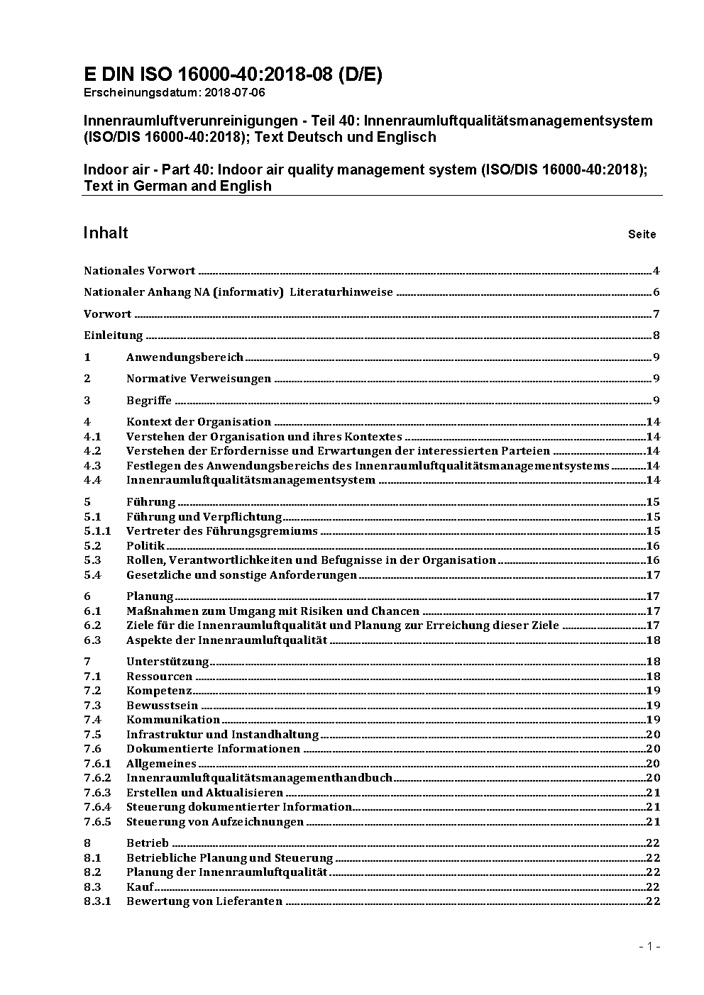 Innenraumluftverunreinigungen - Teil 40: Innenraumluftqualitätsmanagementsystem - Änderung 1: Ergänzungen zu klimabezogenen Maßnahmen (ISO 16000-40:2019/Amd.1:2024)
