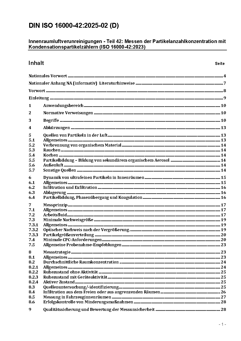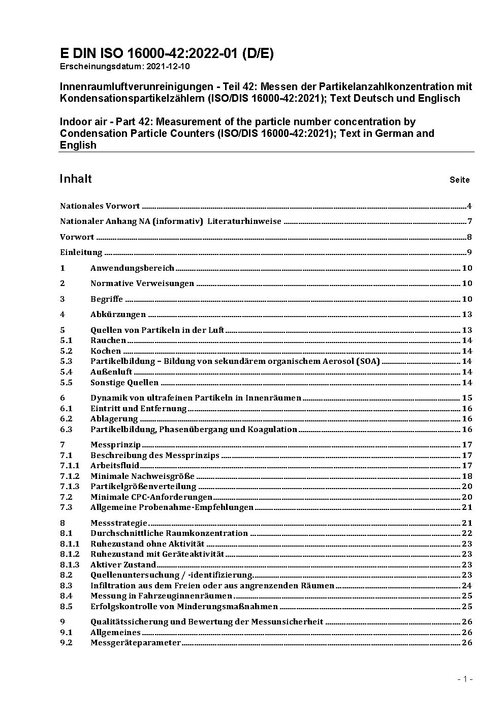 Indoor air - Part 42: Measurement of the particle number concentration by Condensation Particle Counters (ISO/DIS 16000-42:2021); Text in German and English