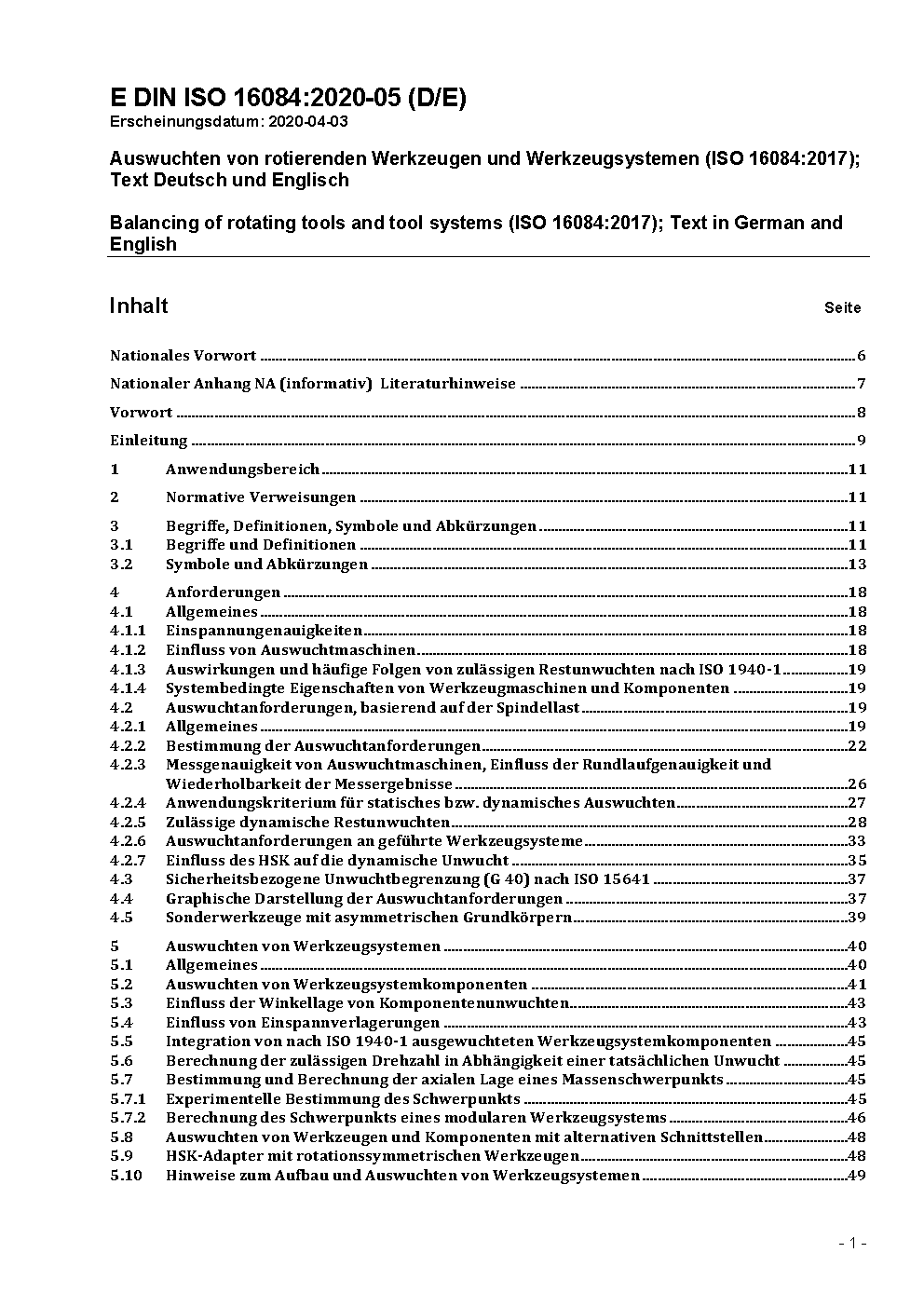 Auswuchten von rotierenden Werkzeugen und Werkzeugsystemen (ISO 16084:2017)