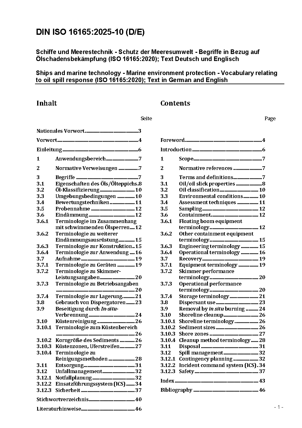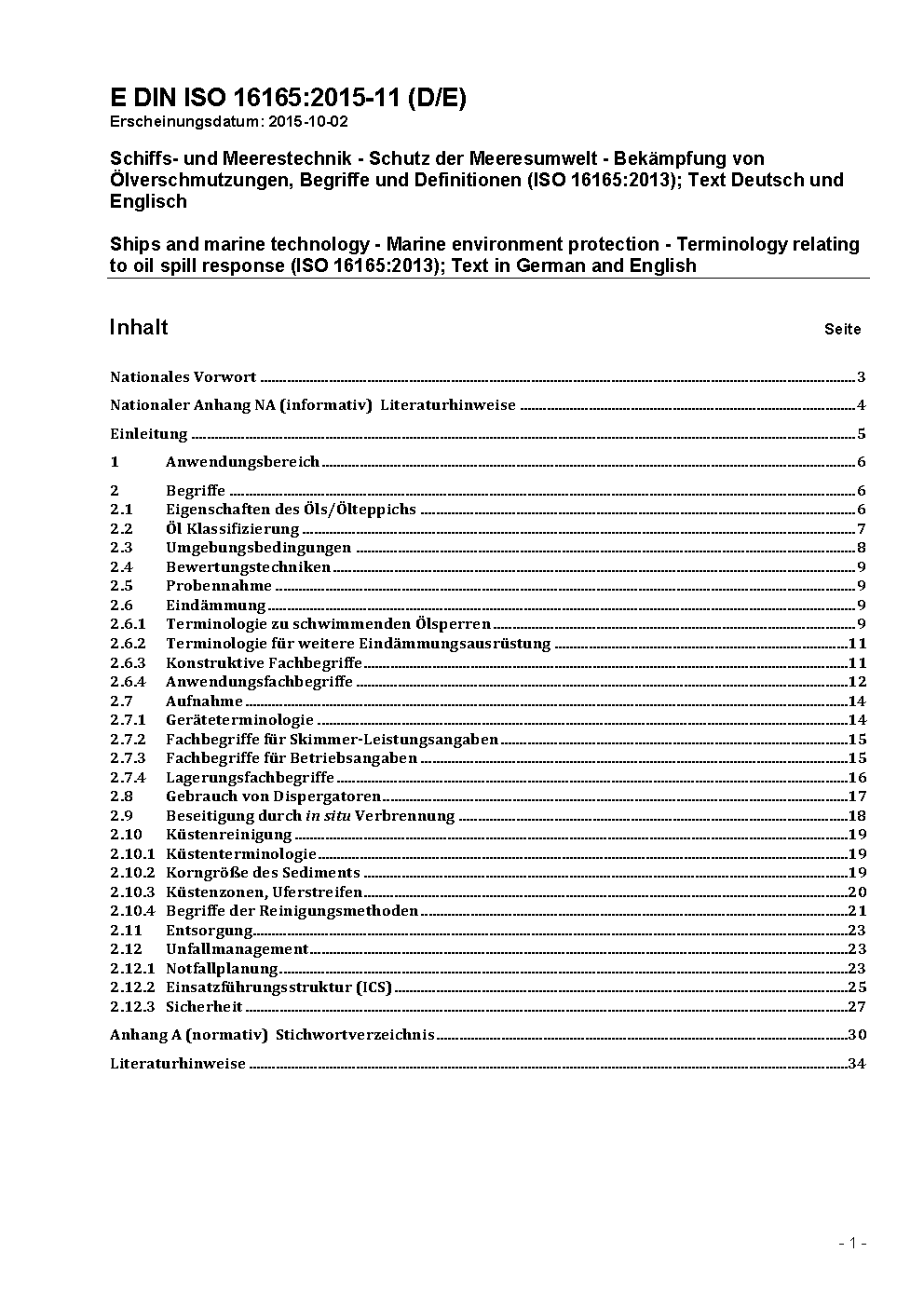 Ships and marine technology - Marine environment protection - Terminology relating to oil spill response (ISO 16165:2013); Text in German and English