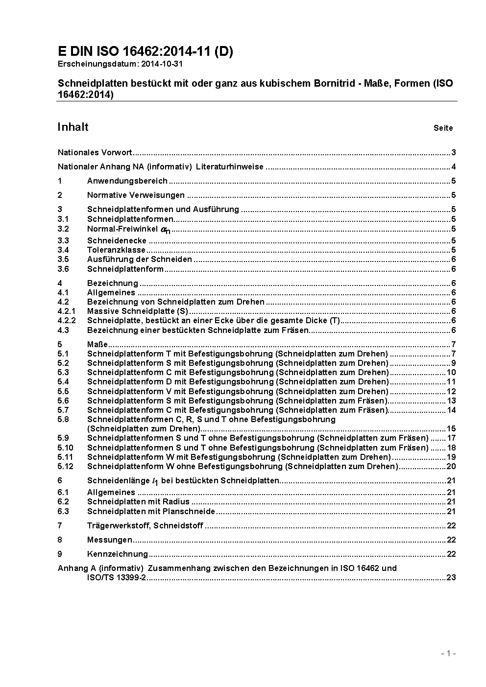 Schneidplatten bestückt mit oder ganz aus kubischem Bornitrid - Maße, Formen (ISO 16462:2014)