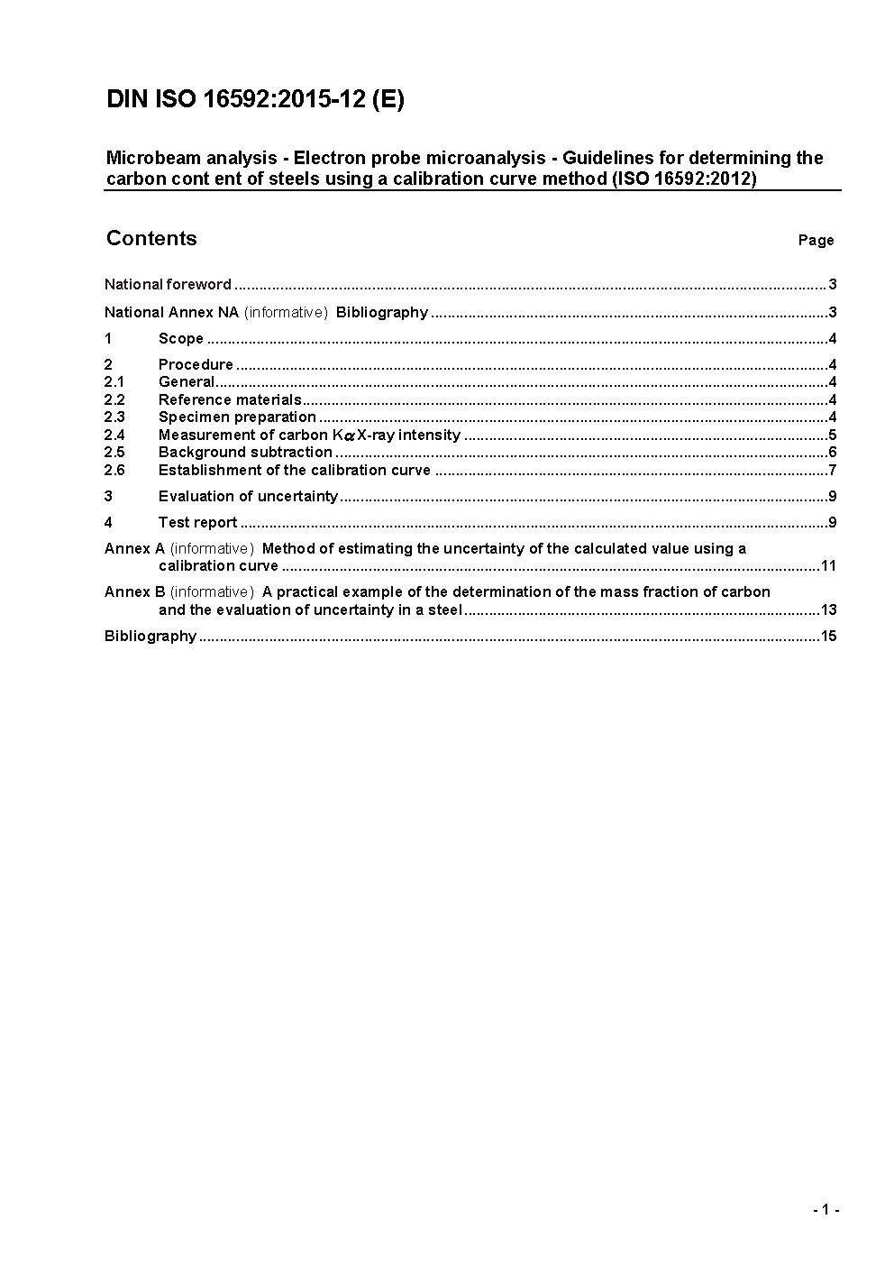 Microbeam analysis - Electron probe microanalysis - Guidelines for determining the carbon content of steels using a calibration curve method (ISO 16592:2012); Text in German and English