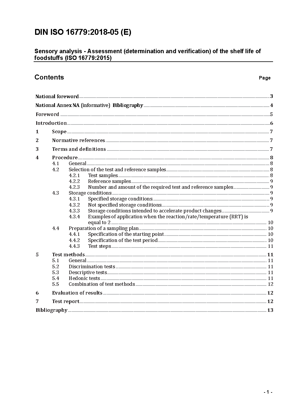 Sensory analysis - Assessment (determination and verification) of the shelf life of foodstuffs (ISO 16779:2015); Text in German and English