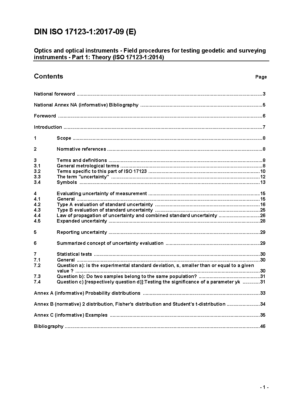 Optics and optical instruments - Field procedures for testing geodetic and surveying instruments - Part 1: Theory (ISO 17123-1:2014)