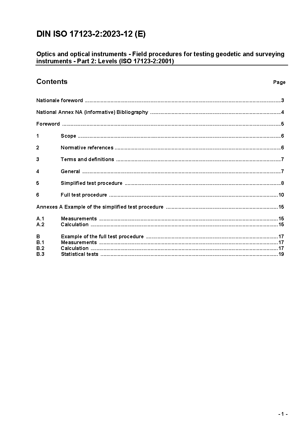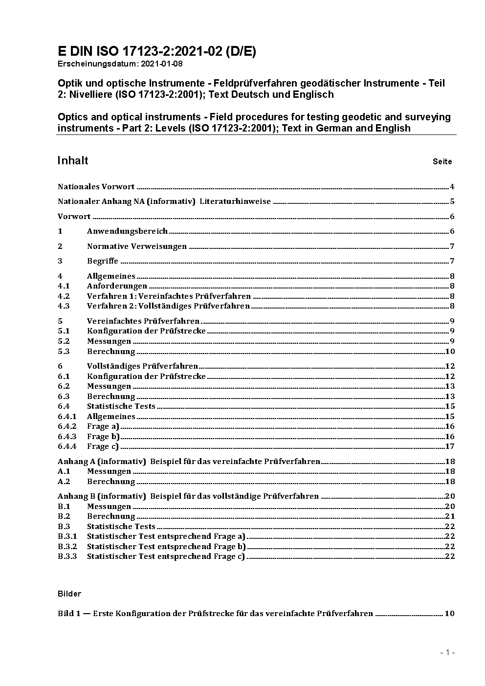 Optik und optische Instrumente - Feldprüfverfahren geodätischer Instrumente - Teil 2: Nivelliere (ISO 17123-2:2001)