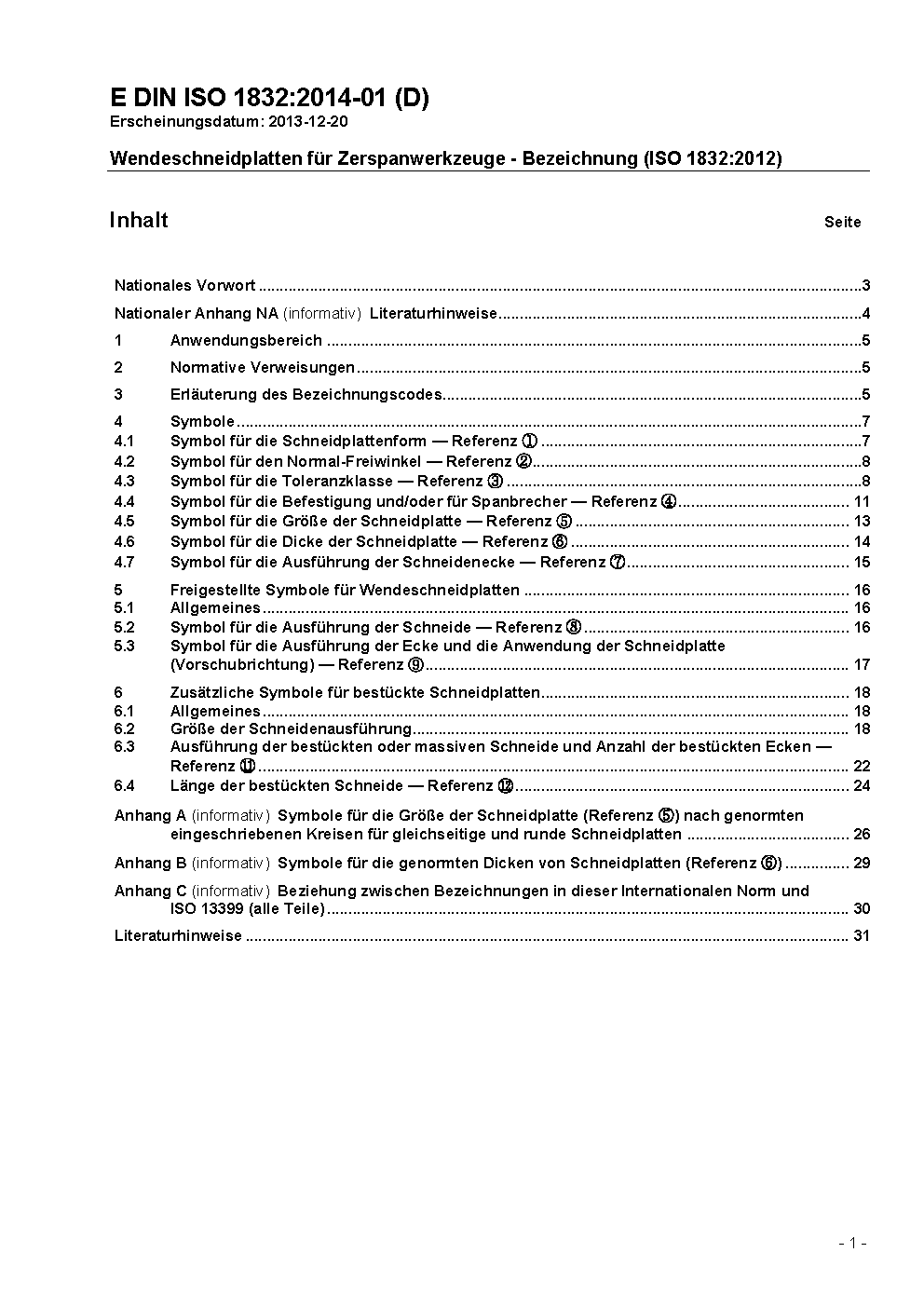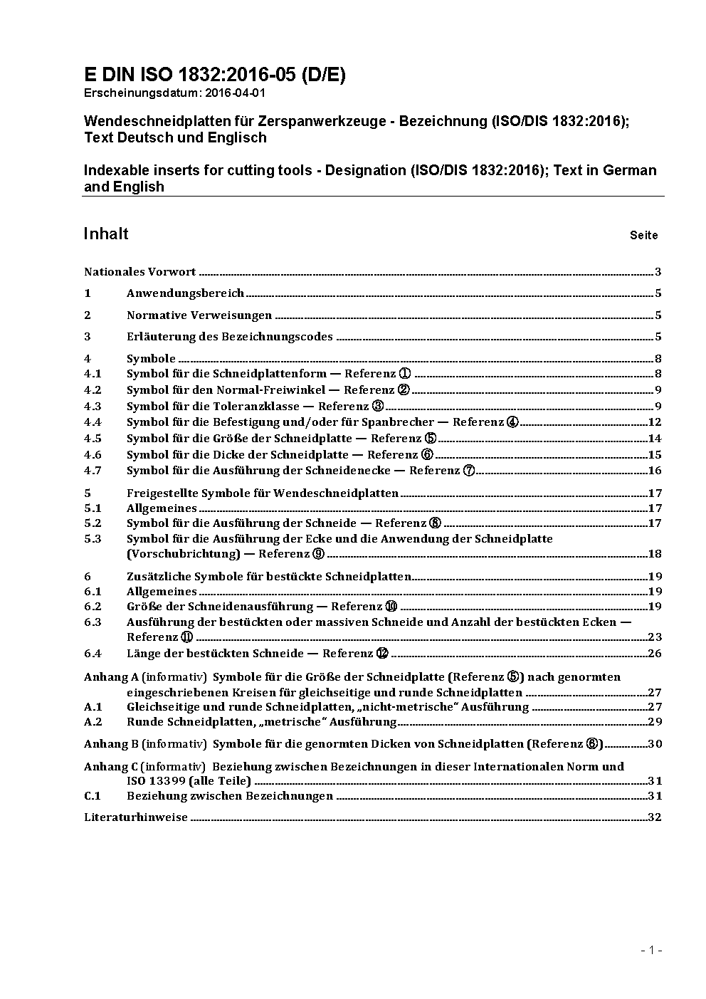 Wendeschneidplatten für Zerspanwerkzeuge - Bezeichnung (ISO 1832:2004)
