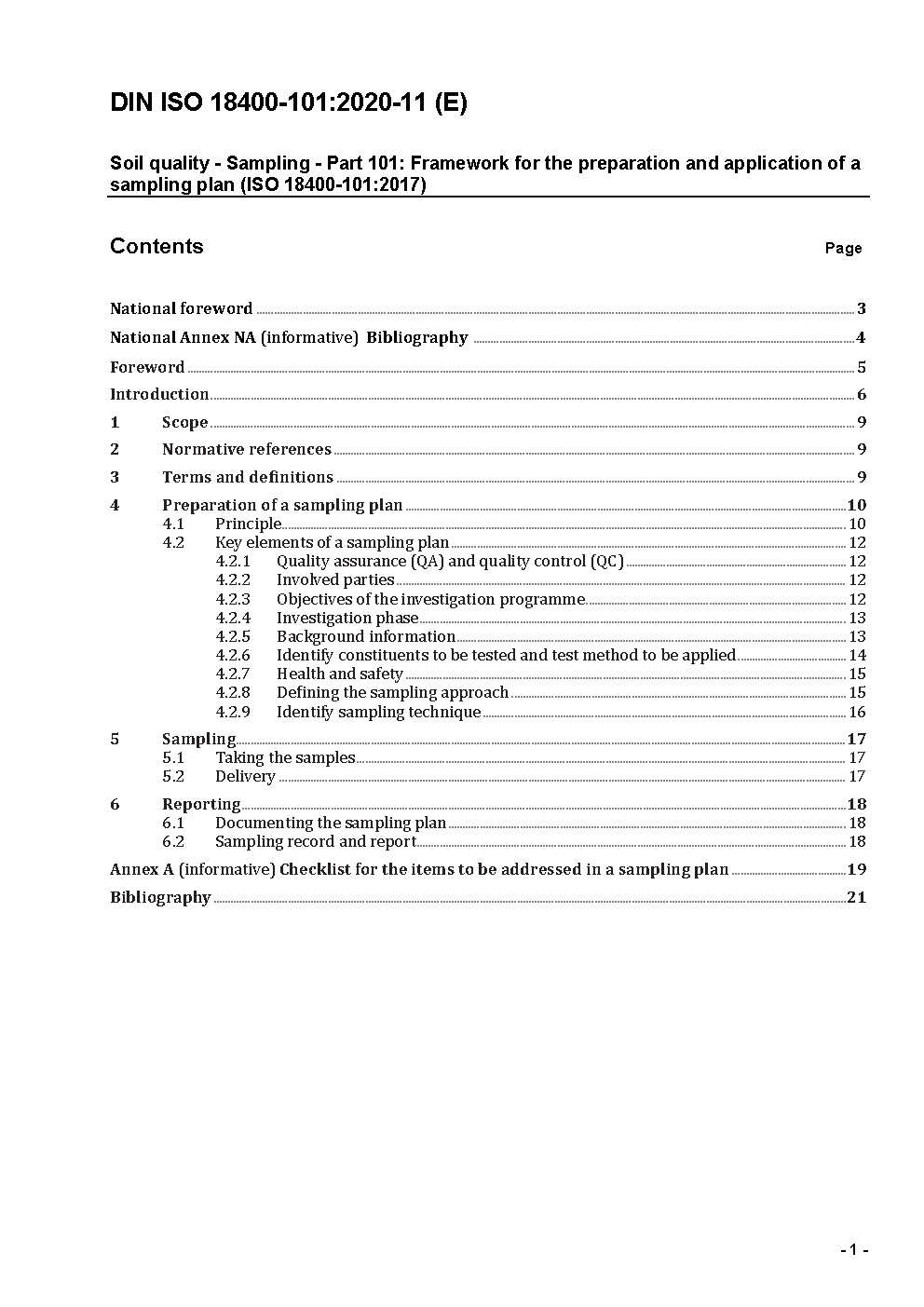 Soil quality - Sampling - Part 101: Framework for the preparation and application of a sampling plan (ISO/DIS 18400-101:2014)
