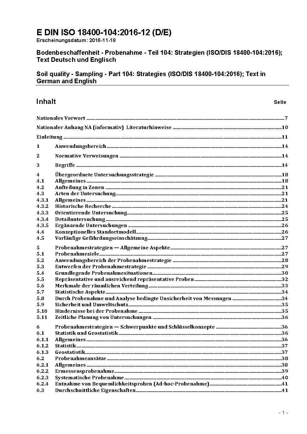 Soil quality - Sampling - Part 104: Strategies (ISO/DIS 18400-104:2016); Text in German and English
