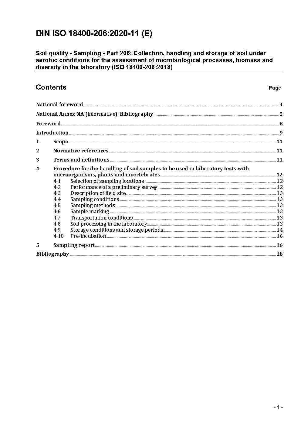 Soil quality - Sampling - Part 206: Collection, handling and storage of soil under aerobic conditions for the assessment of microbiological processes, biomass and diversity in the laboratory (ISO 18400-206:2018)